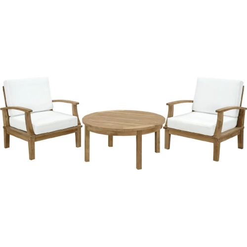 Modway Marina 3 Piece Outdoor Sofa Set in Teak & White Cushions