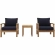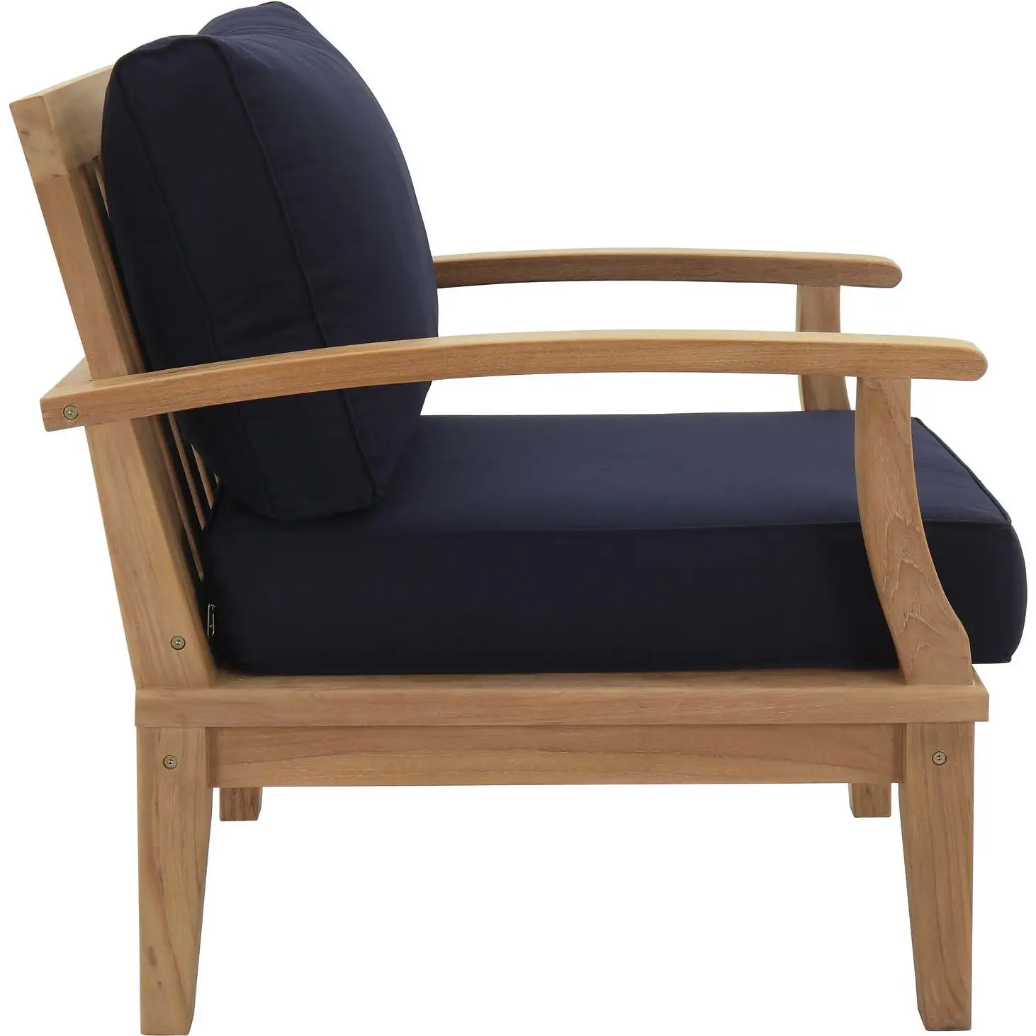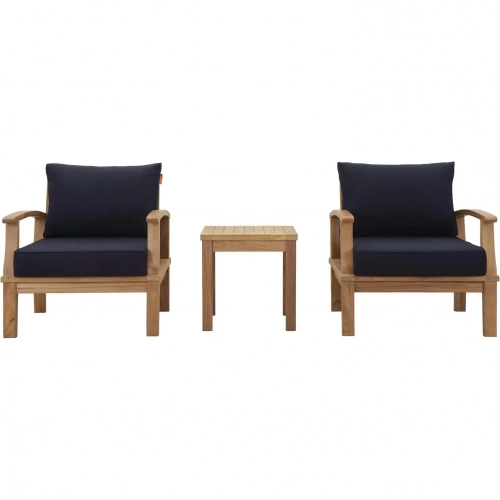 Modway Marina 3 Piece Outdoor Arm Chair Set in Teak & Navy Blue Fabric