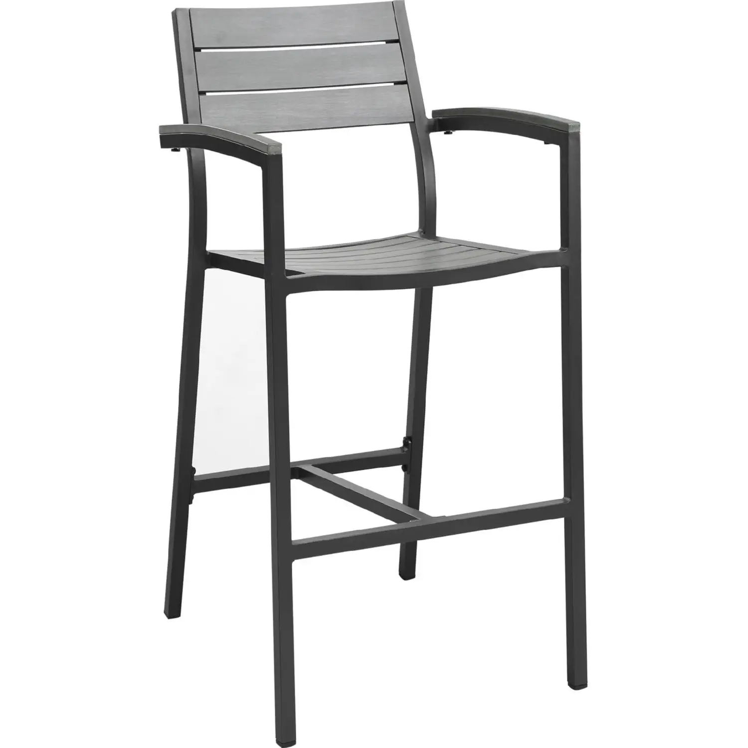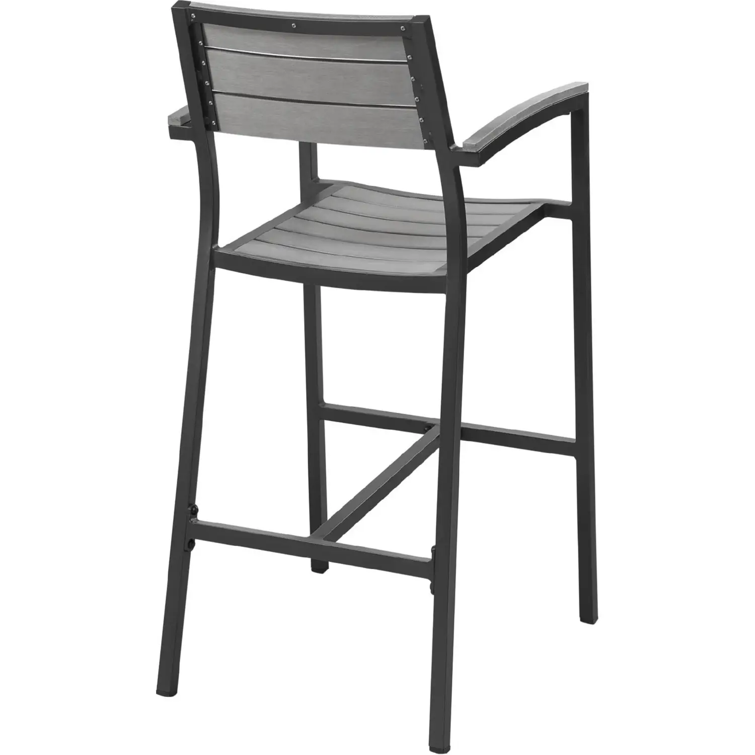 Modway Maine Outdoor Patio Bar Stool in Brown Metal & Gray Polywood (Set of 2)