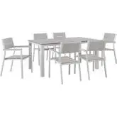 Modway EEI-1753-WHI-LGR-SET Maine 9 Piece Outdoor Patio Dining Set White Metal Light Gray Polywood