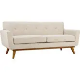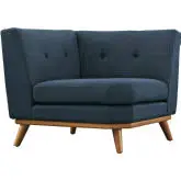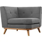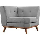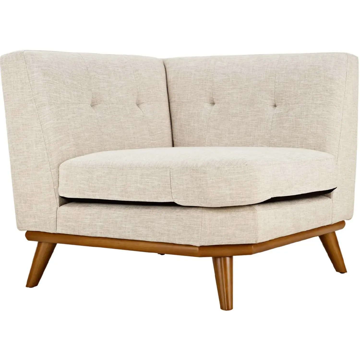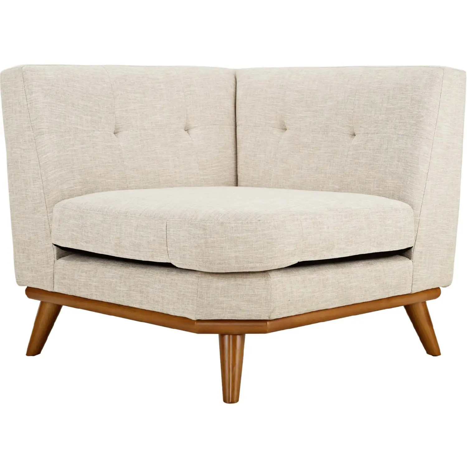 Modway Engage Corner Modular Sofa Section in Tufted Beige Fabric on & Cherry Finished Legs