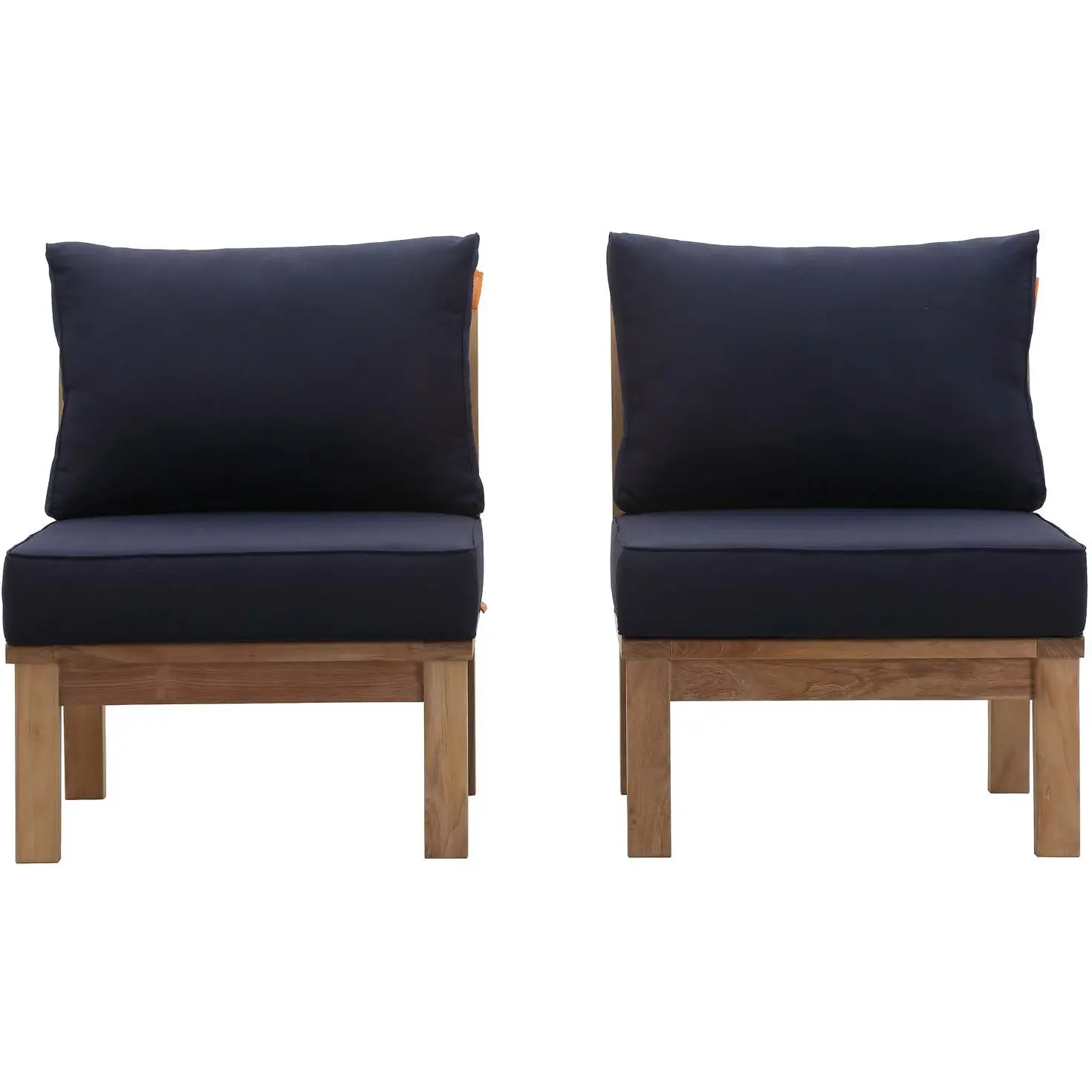 Modway Marina Outdoor Armless Chair in Teak & Navy Blue Fabric (Set of 2)