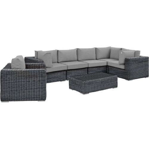 Modway EEI-1892-GRY-GRY-SET Summon 7 Piece Outdoor Sectional Sofa Set Poly Rattan & Gray Sunbrella ®