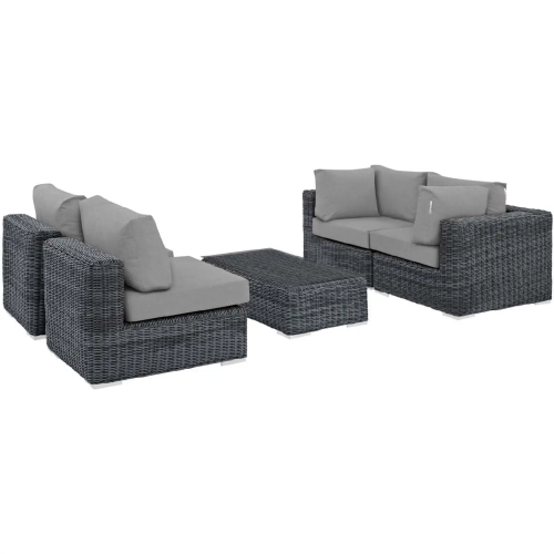 Modway EEI-1896-GRY-GRY-SET Summon 5 Piece Outdoor Sectional Sofa Set Poly Rattan & Gray Sunbrella ®