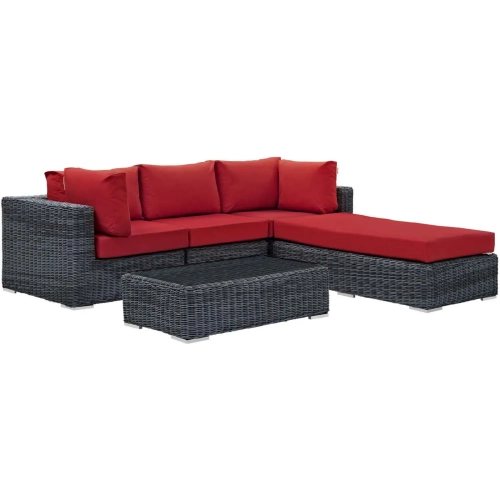 Modway EEI-1904-GRY-RED-SET Summon 5 Piece Outdoor Sectional Sofa Set Poly Rattan & Red Sunbrella ®