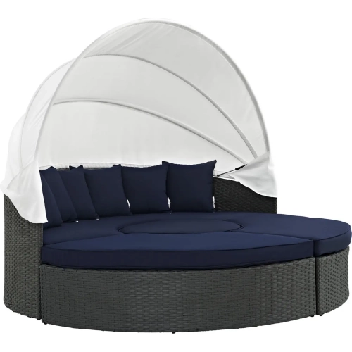 Modway Sojourn Outdoor Patio Daybed in Poly Rattan with Navy Sunbrella ® Cushion