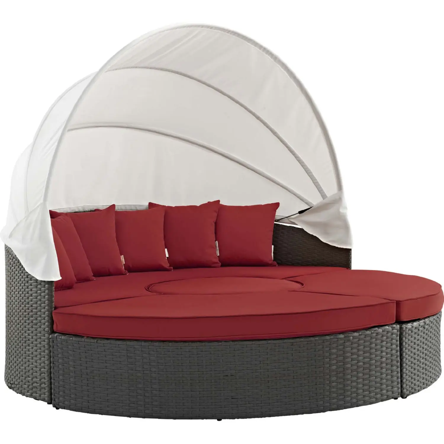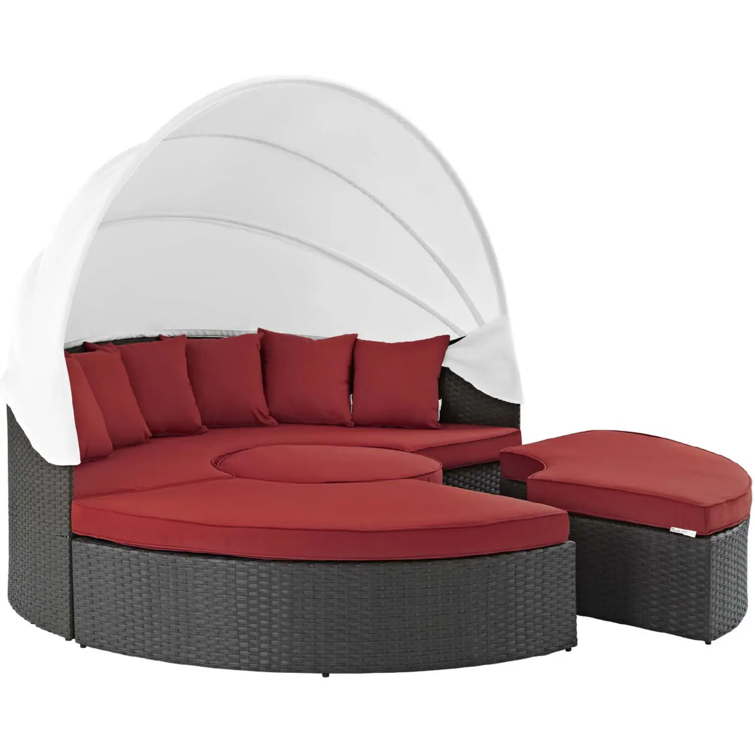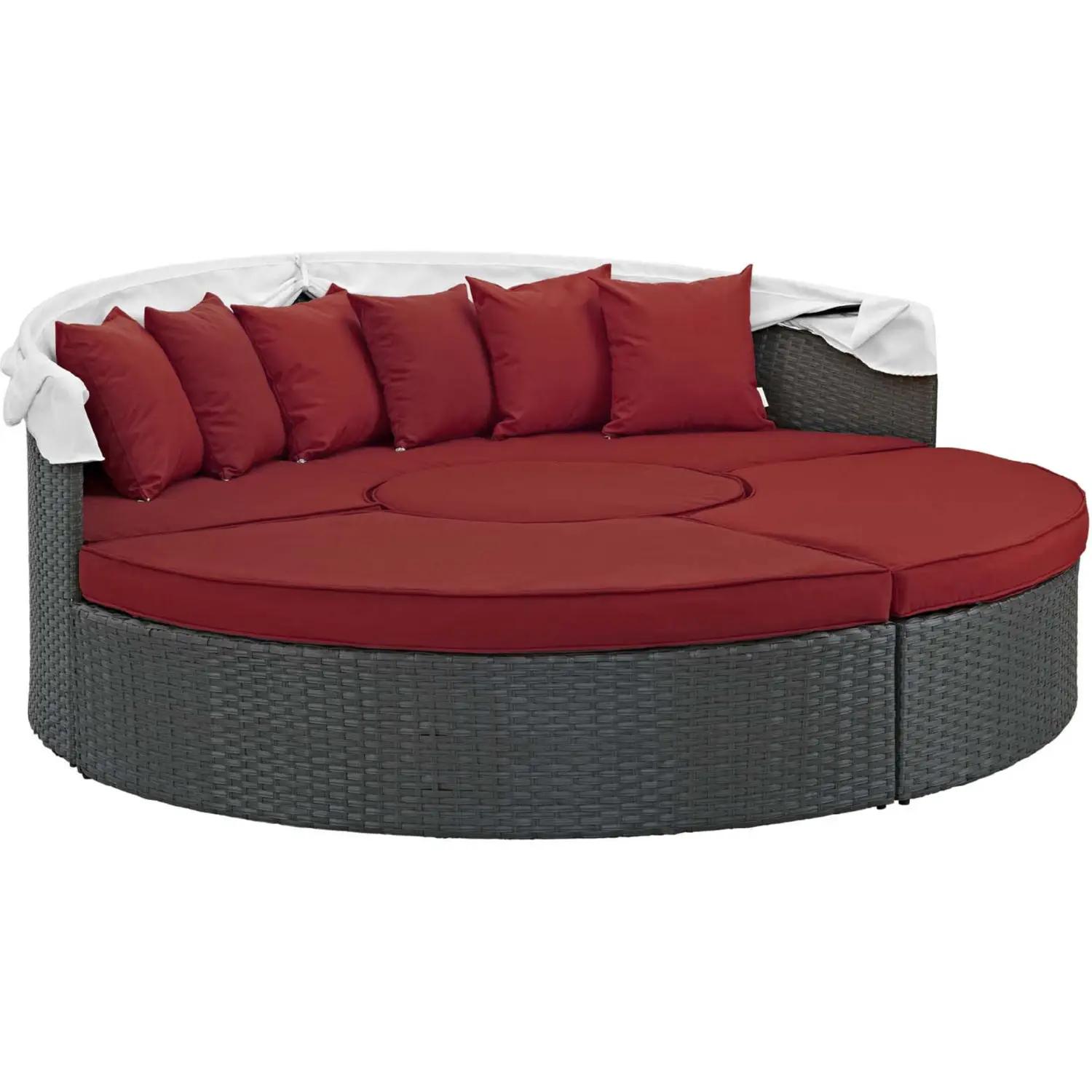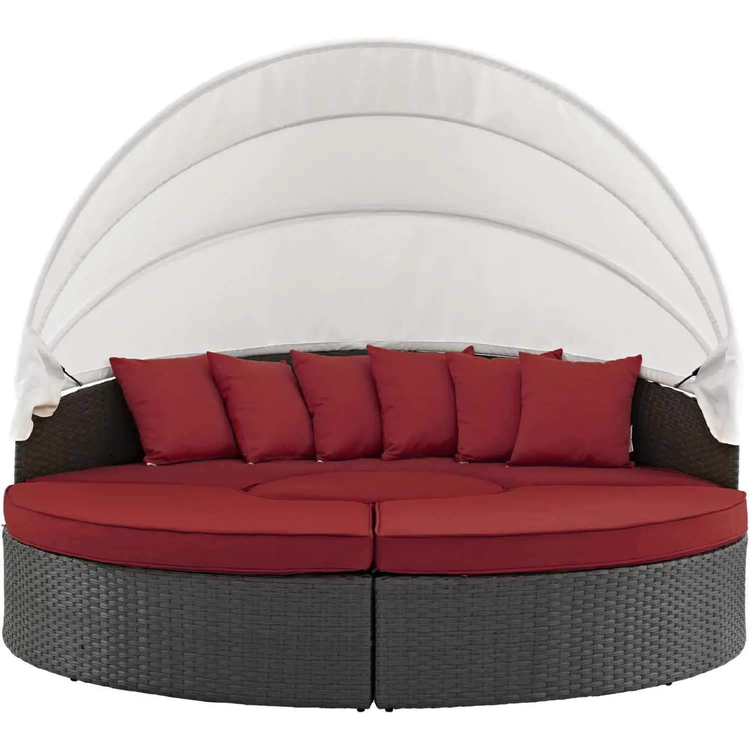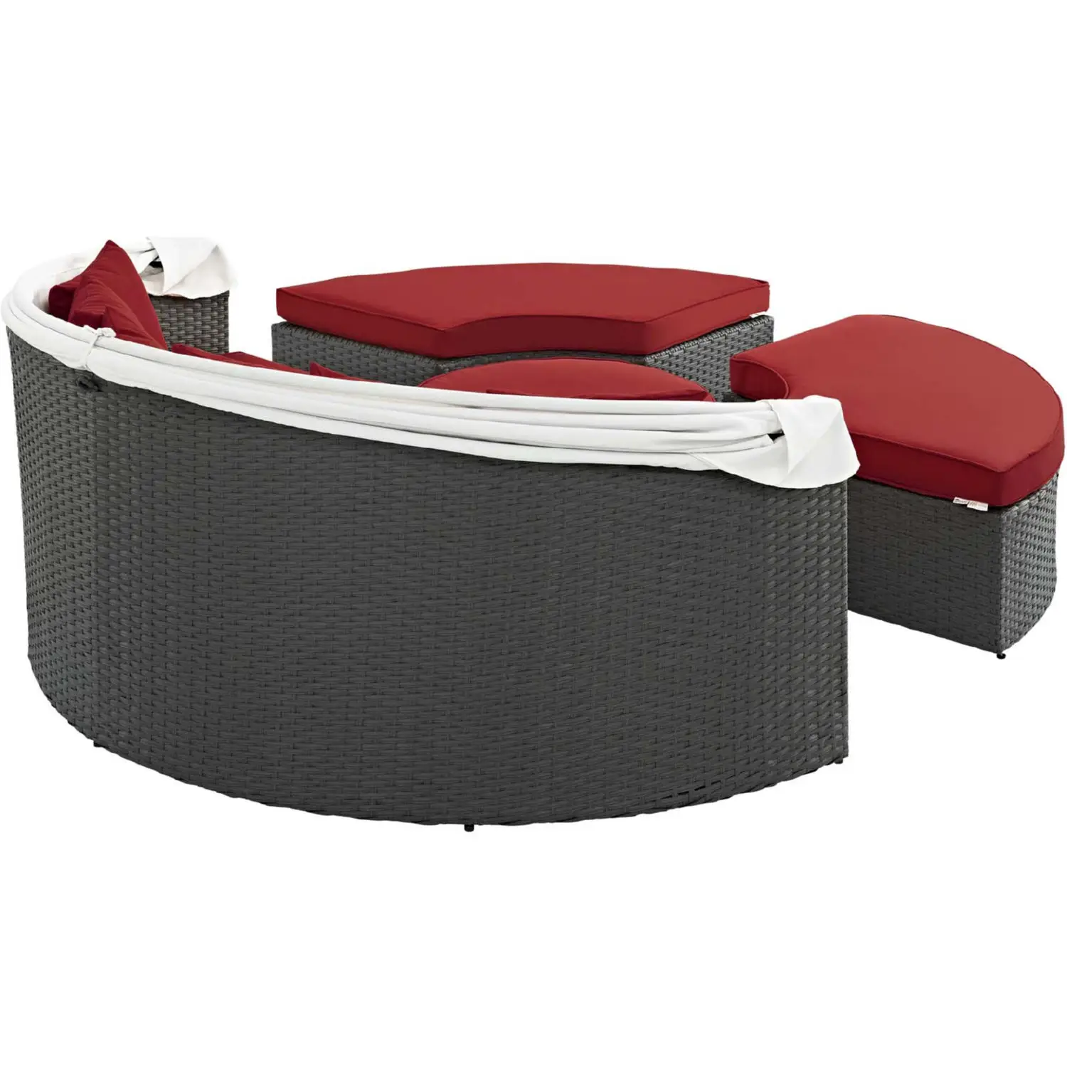Modway EEI-1986-CHC-RED Sojourn Outdoor Sunbrella ® Daybed Chocolate Poly Rattan Red