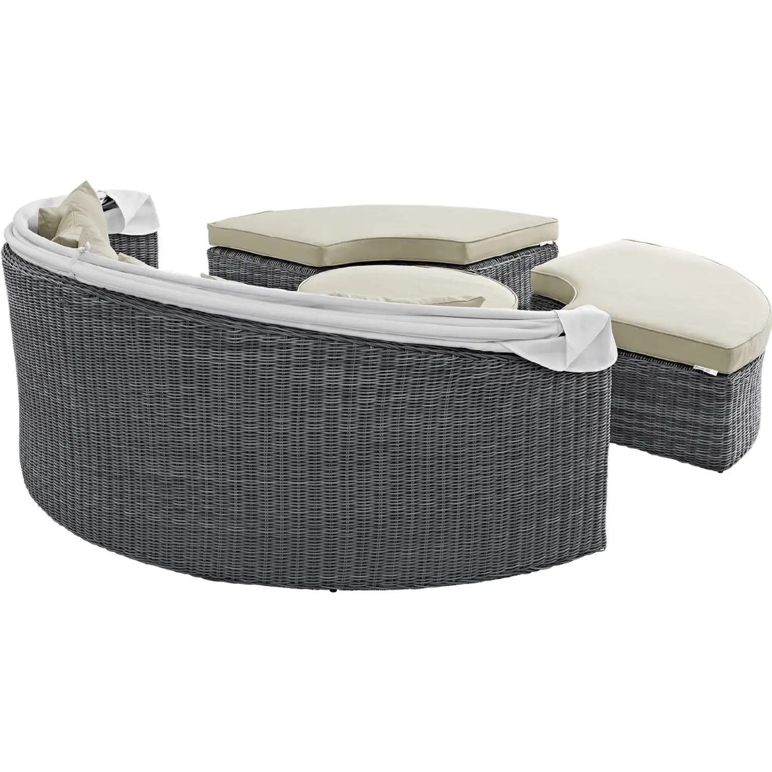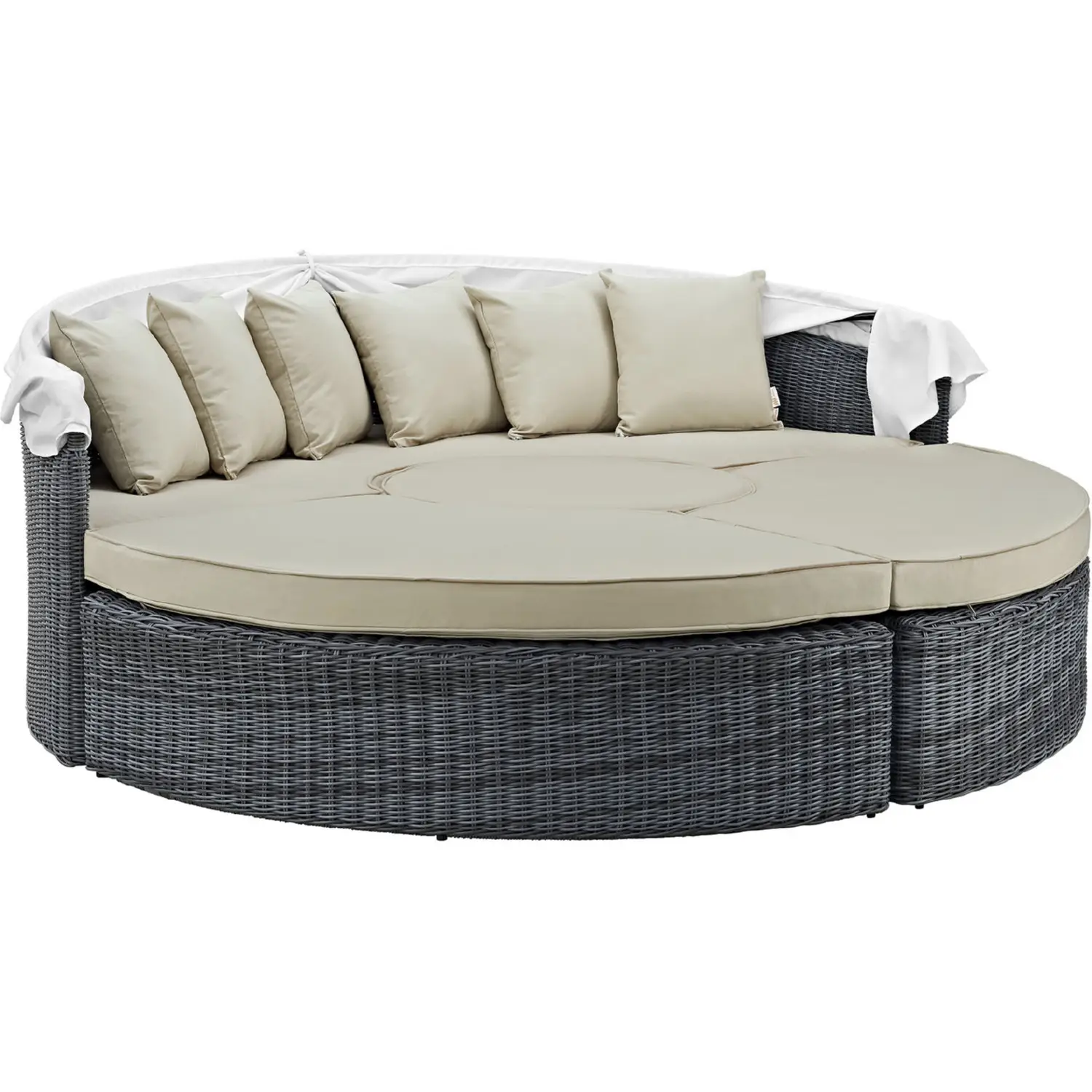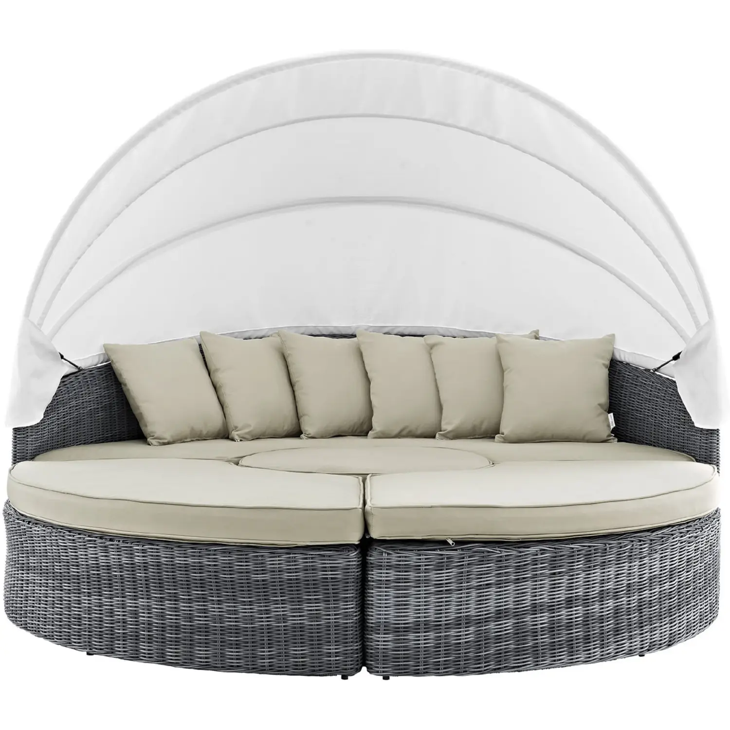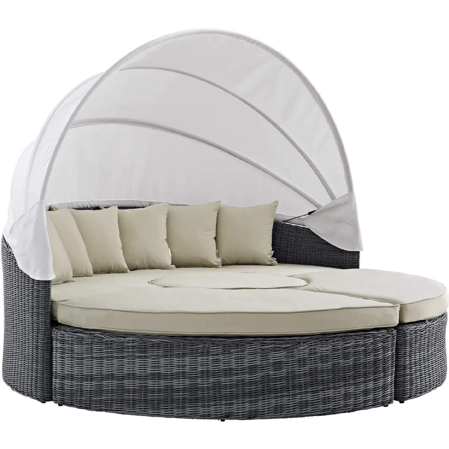 Modway EEI-1997-GRY-BEI-SET Summon Canopy Outdoor Patio Daybed Antique Canvas Beige Sunbrella