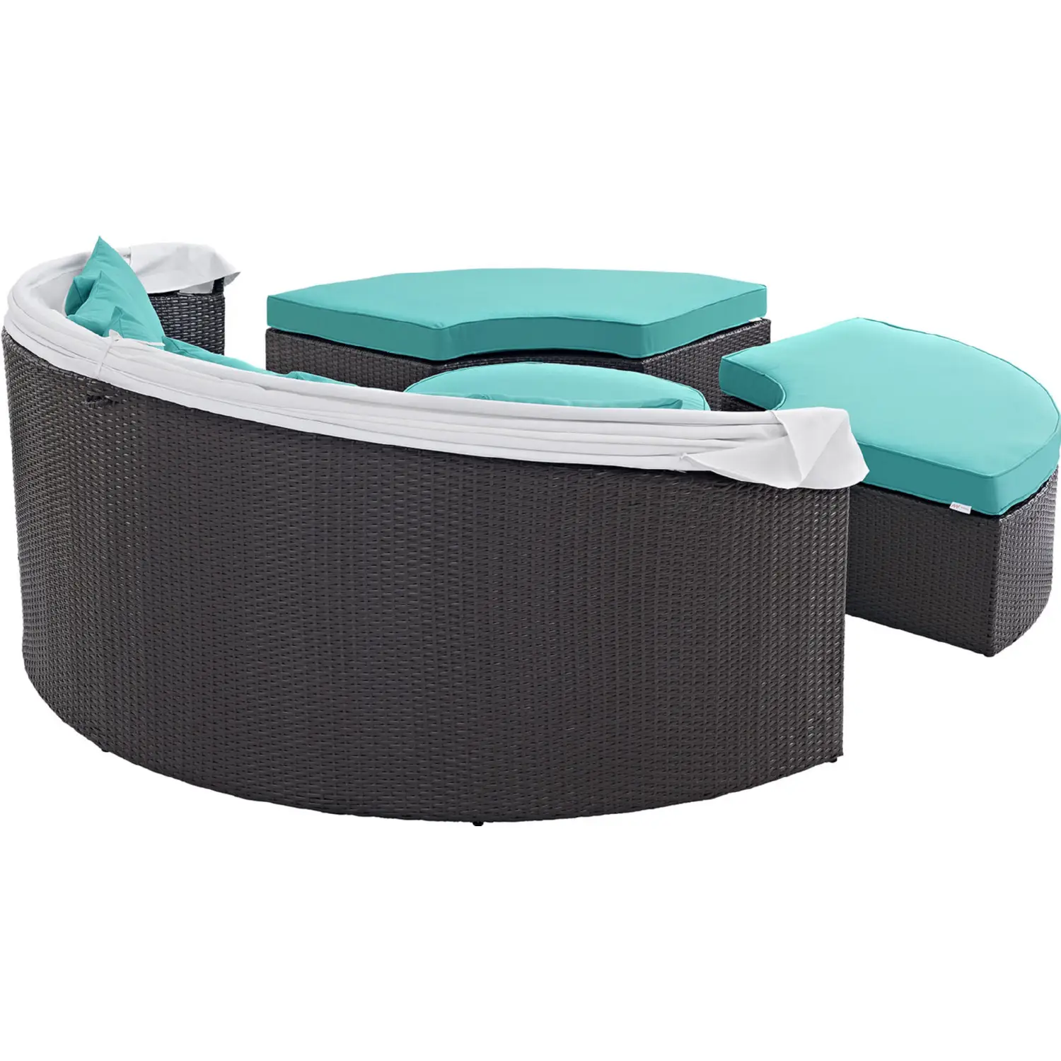 Modway EEI-2173-EXP-TRQ-SET Convene Canopy Outdoor Patio Daybed Espresso Turquoise Cushions