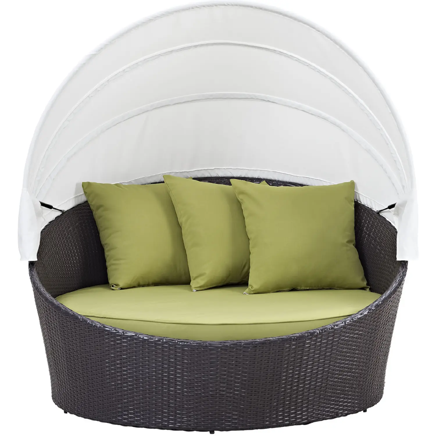 Modway Convene Canopy Outdoor Patio Daybed in Espresso with Peridot Cushions