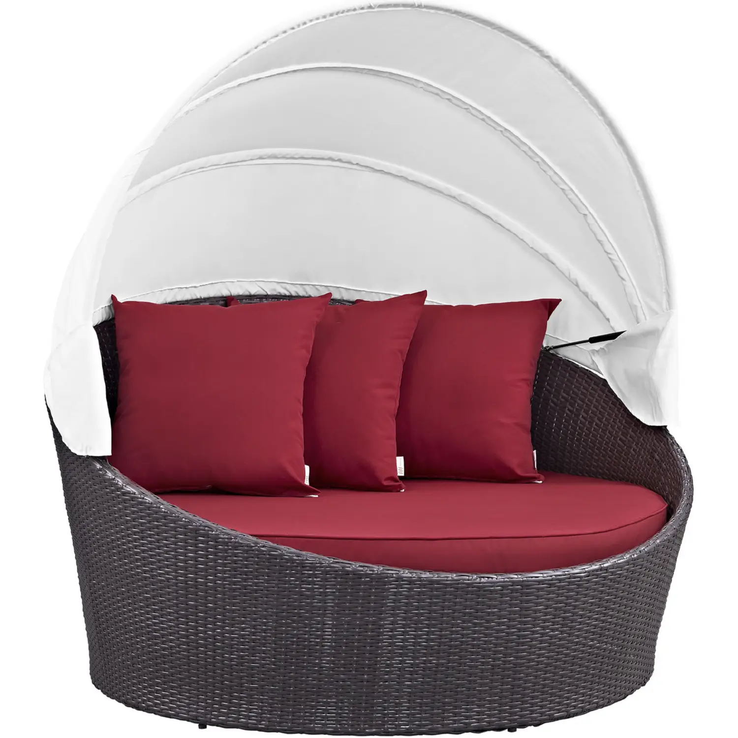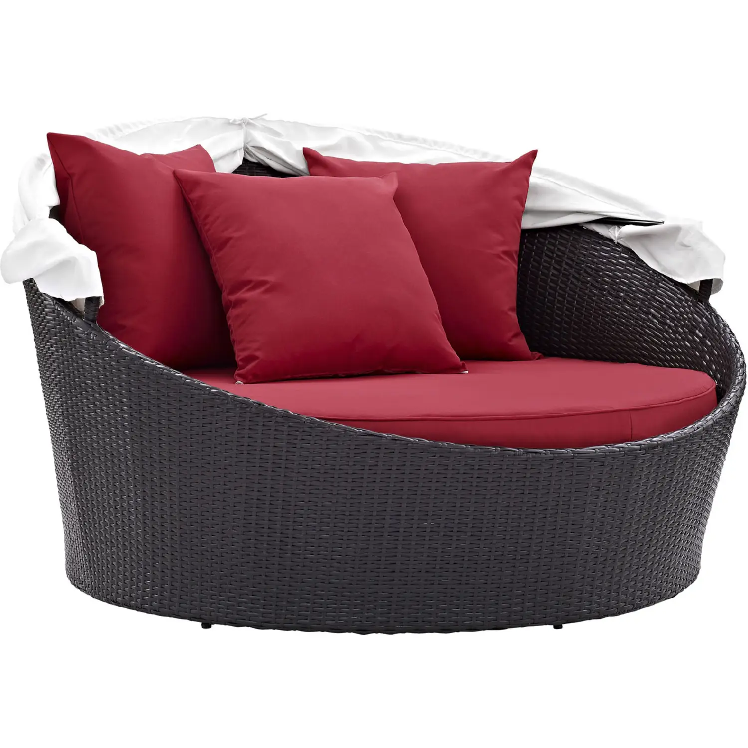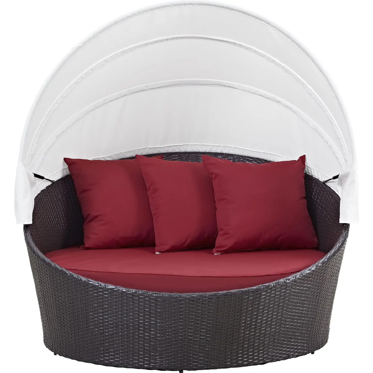 Modway Convene Canopy Outdoor Patio Daybed in Espresso with Red Cushions