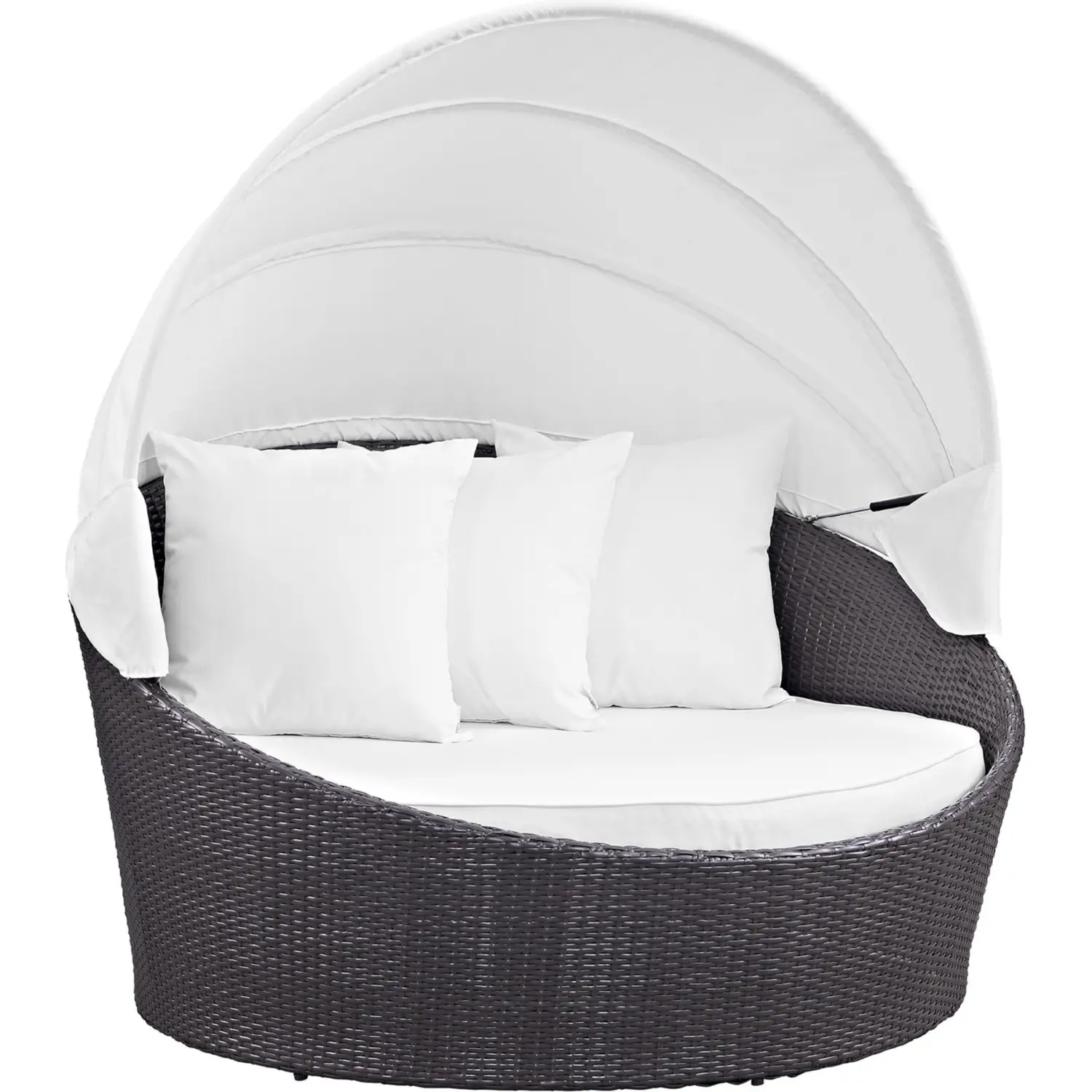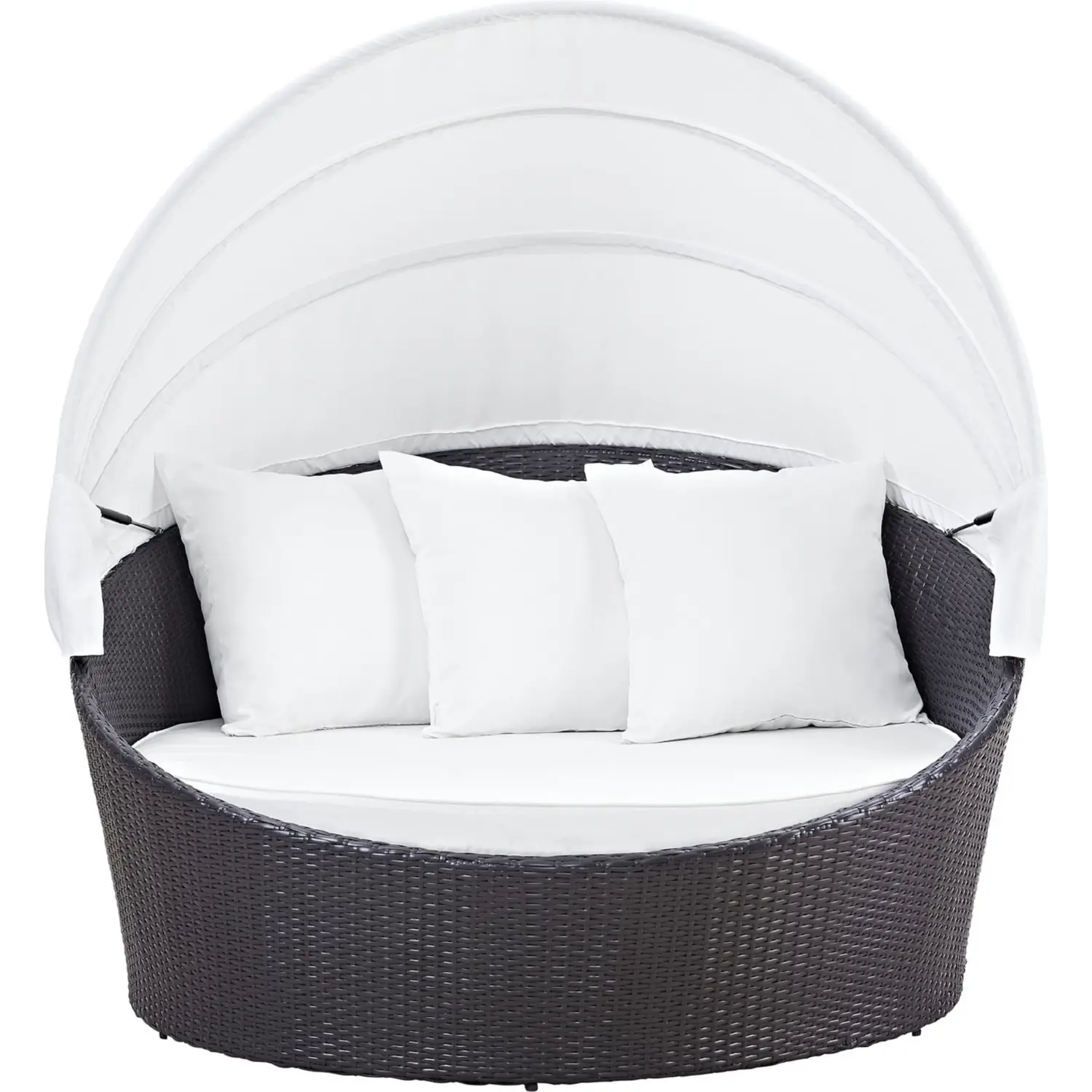 Modway Convene Canopy Outdoor Patio Daybed in Espresso with White Cushions