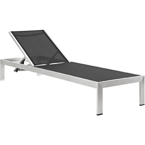 Modway EEI-2249-SLV-BLK Shore Outdoor Patio Aluminum Chaise Brushed Silver Black Textilene