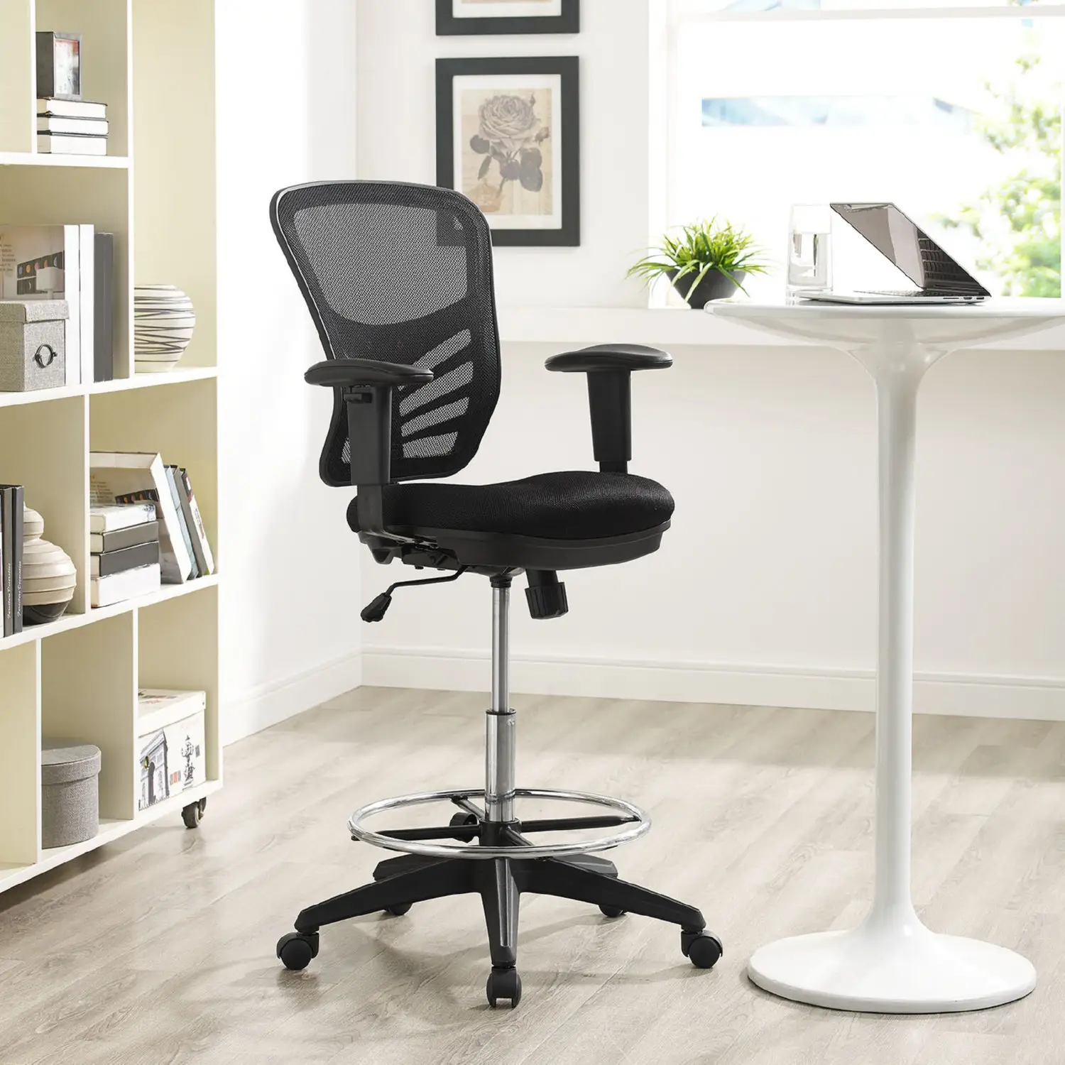 Modway Articulate Drafting Stool Office Chair in Black Mesh