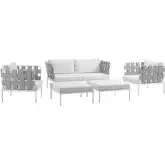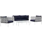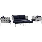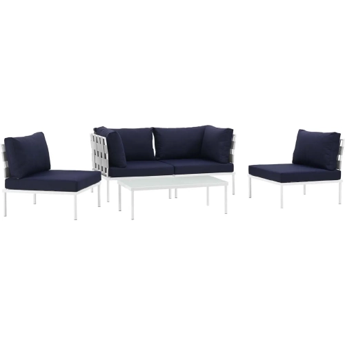 Modway EEI-2622-WHI-NAV-SET Harmony 5 Piece Outdoor Sectional Sofa Set White Navy Blue Fabric