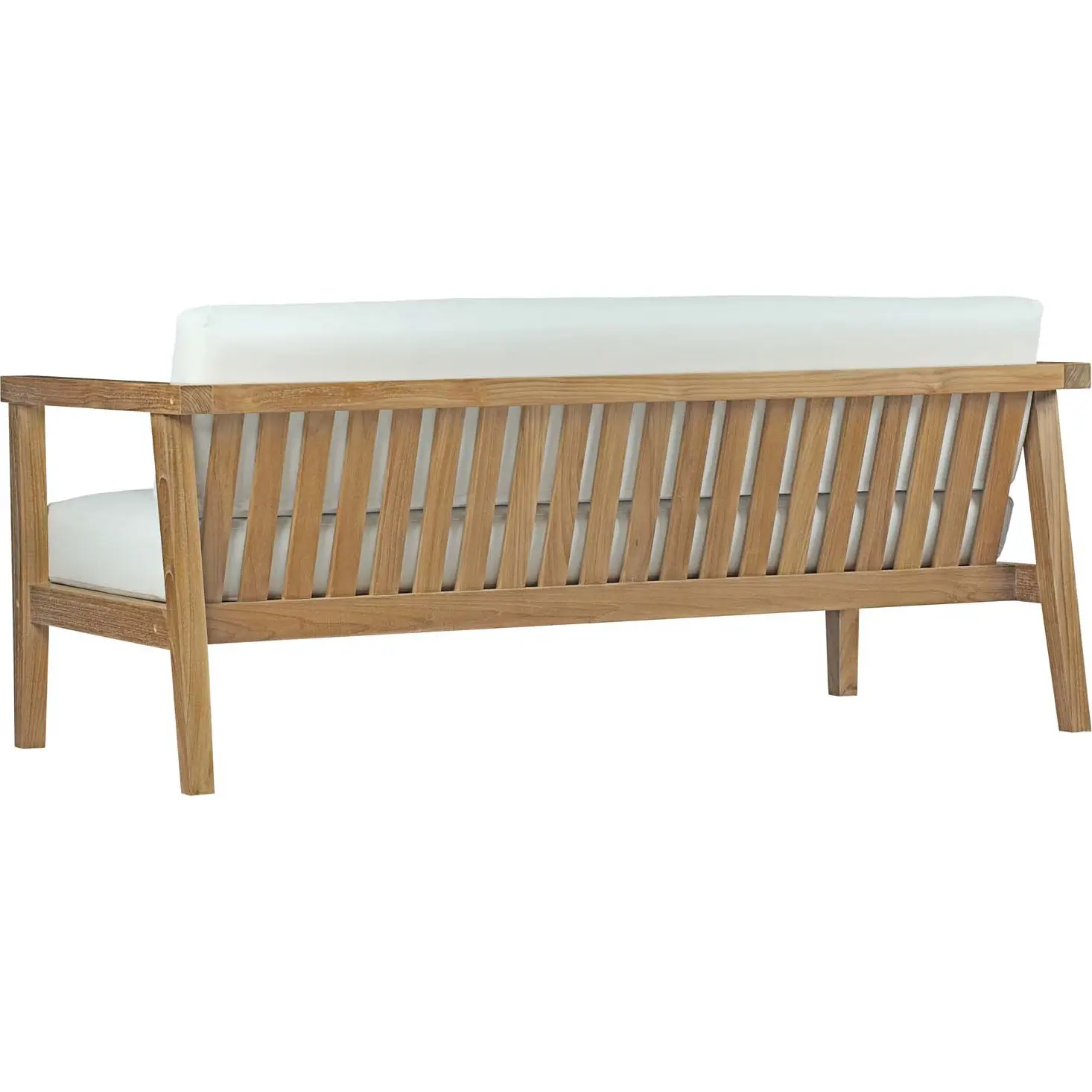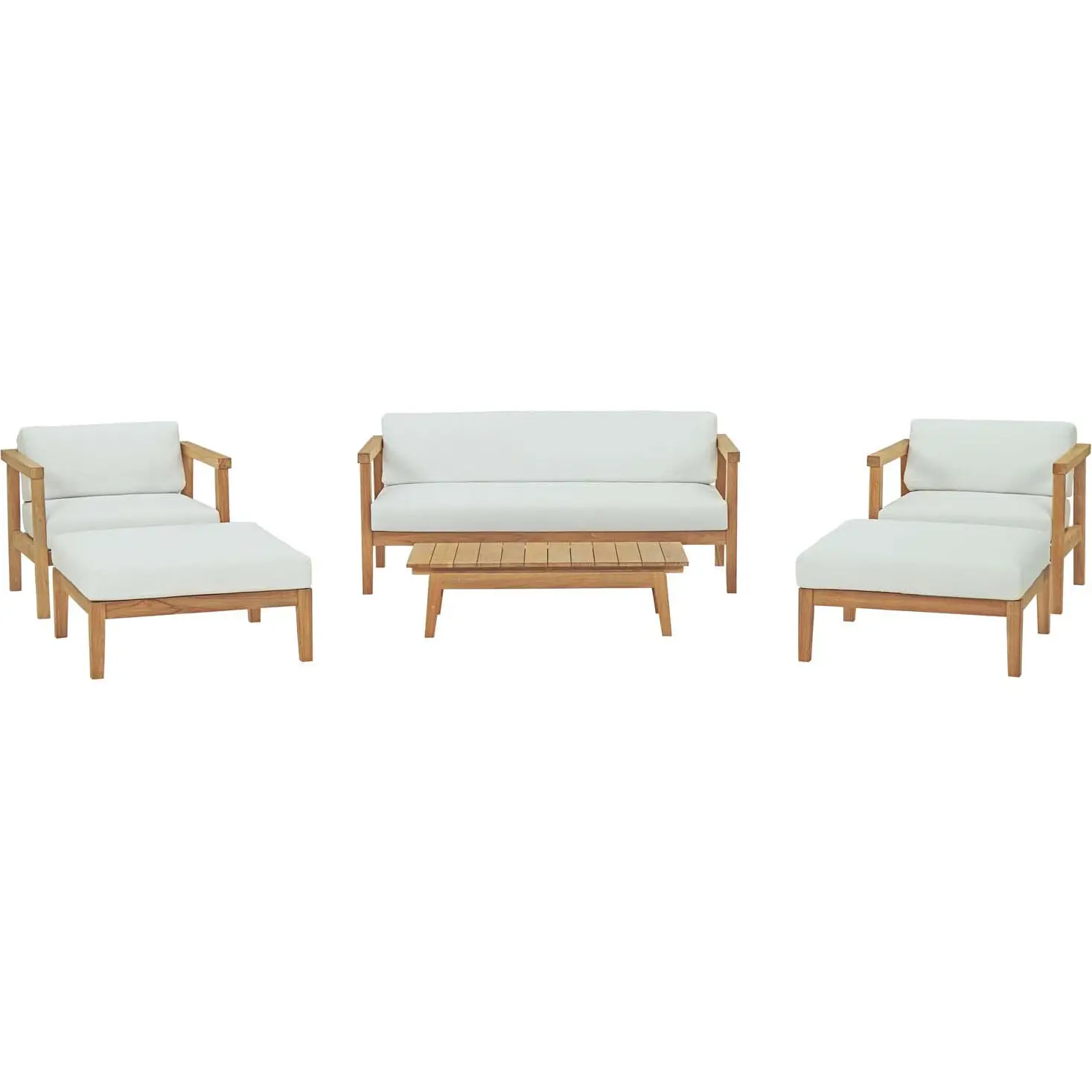 Modway EEI-3109-NAT-WHI-SET Bayport 6 Piece Outdoor Loveseat Set Teak White Fabric