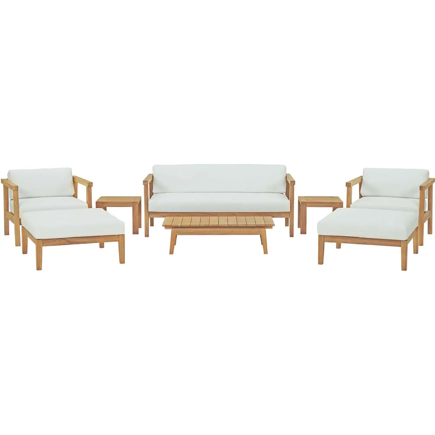 Modway EEI-3110-NAT-WHI-SET Bayport 8 Piece Outdoor Loveseat Set Teak White Fabric