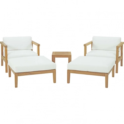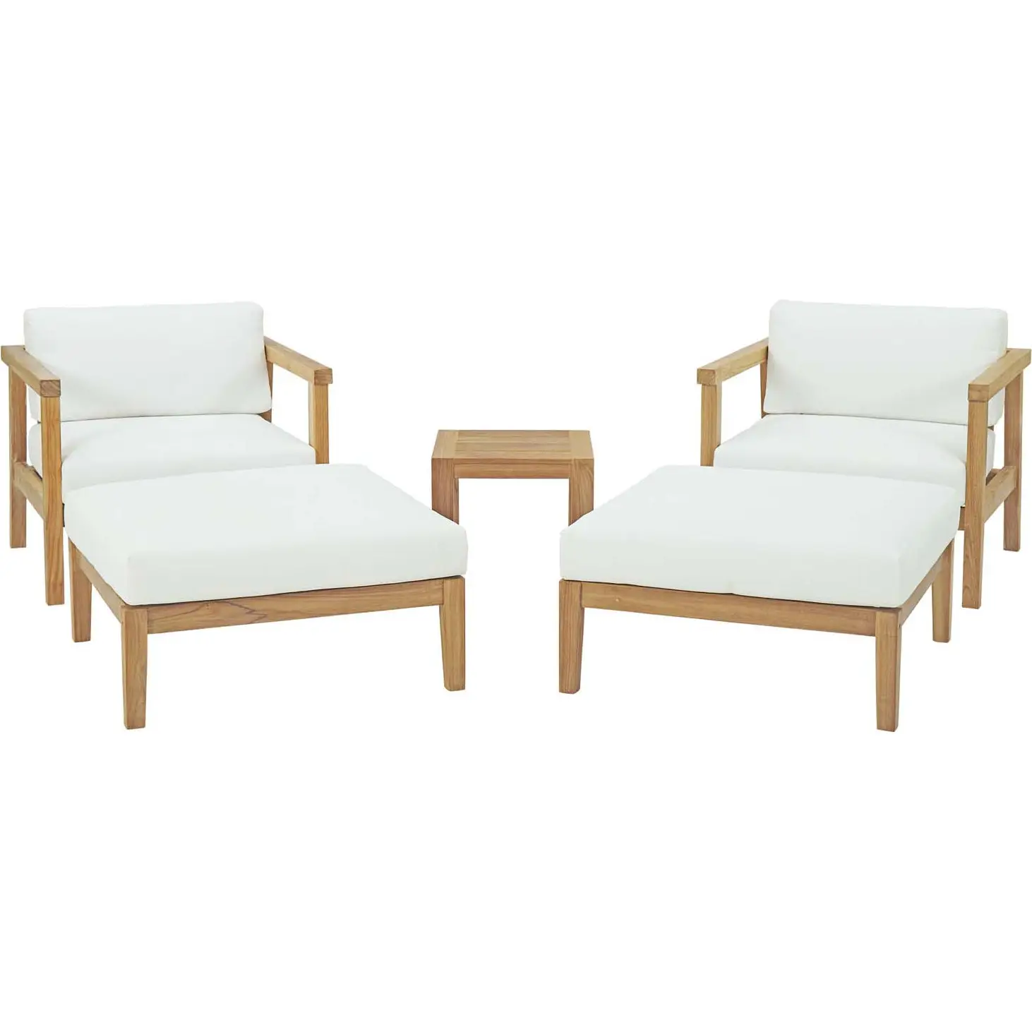 Modway EEI-3113-NAT-WHI-SET Bayport 5 Piece Outdoor Arm Chair Set Teak White Fabric