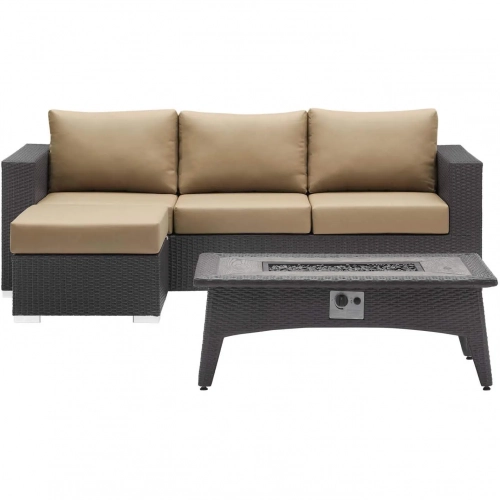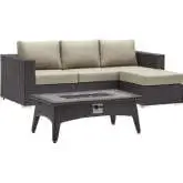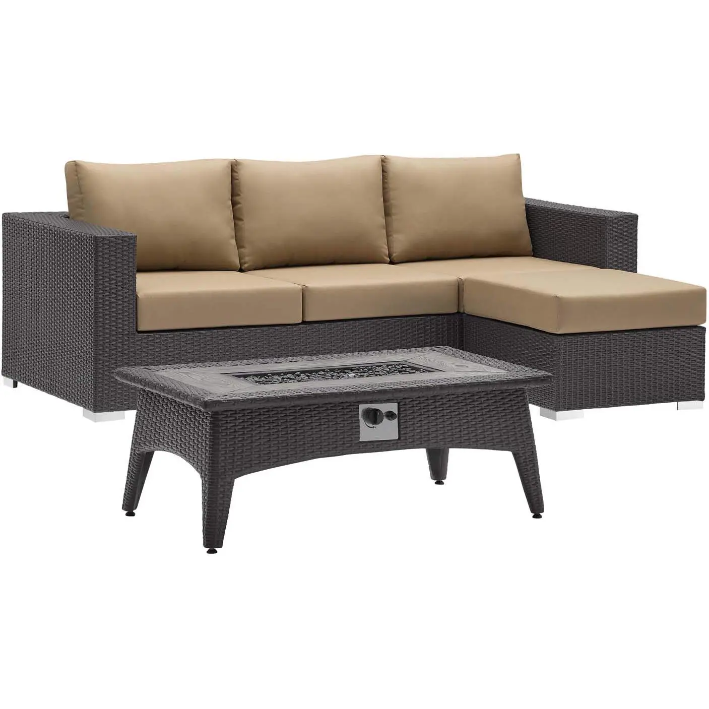 Modway Convene 3 Piece Outdoor Sofa Set with Fire Pit in Espresso & Mocha