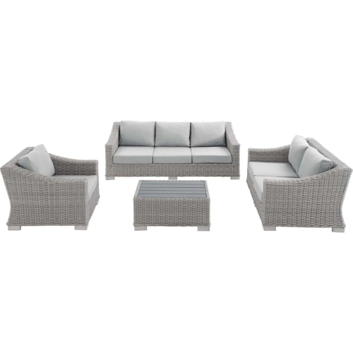 Modway EEI-4355-LGR-GRY Conway Outdoor 4 Piece Sofa Set Gray Rattan Gray Sunbrella ®
