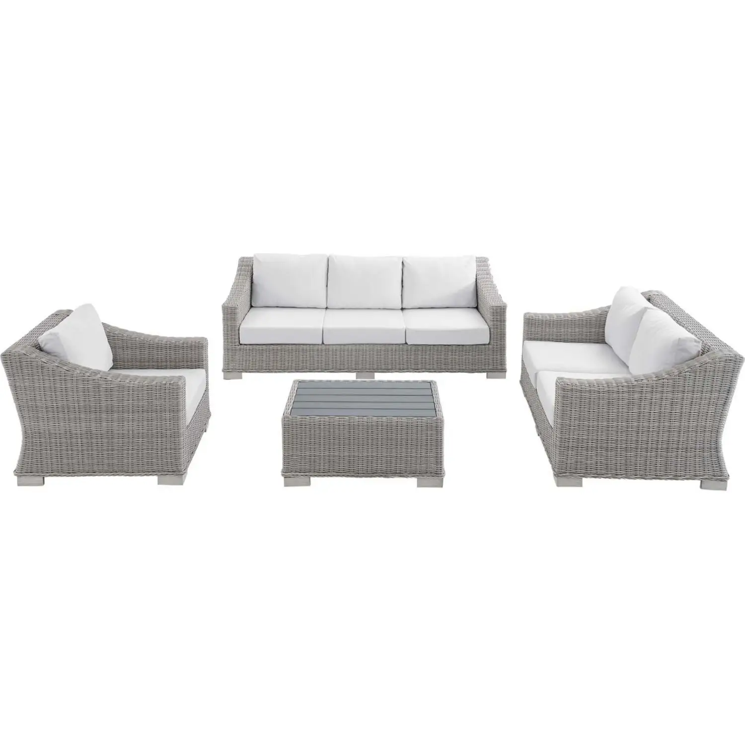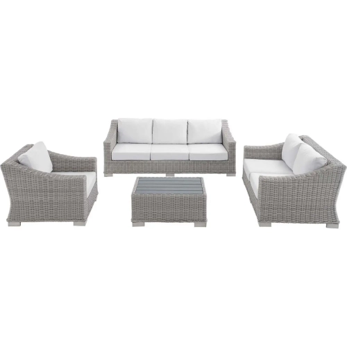 Modway EEI-4355-LGR-WHI Conway Outdoor 4 Piece Sofa Set Gray Rattan White Sunbrella ®