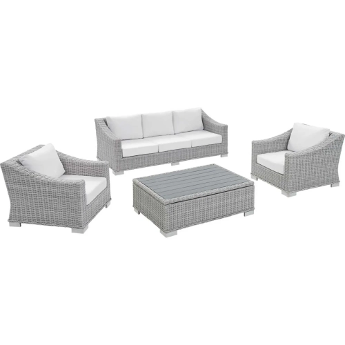 Modway EEI-4359-LGR-WHI Conway Outdoor 4 Piece Sofa Set Gray Rattan White Sunbrella ®