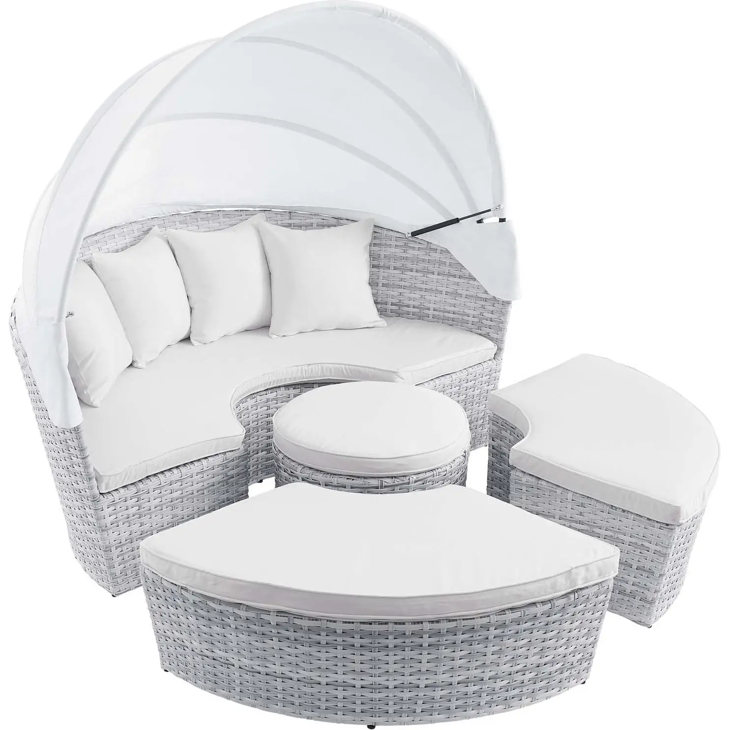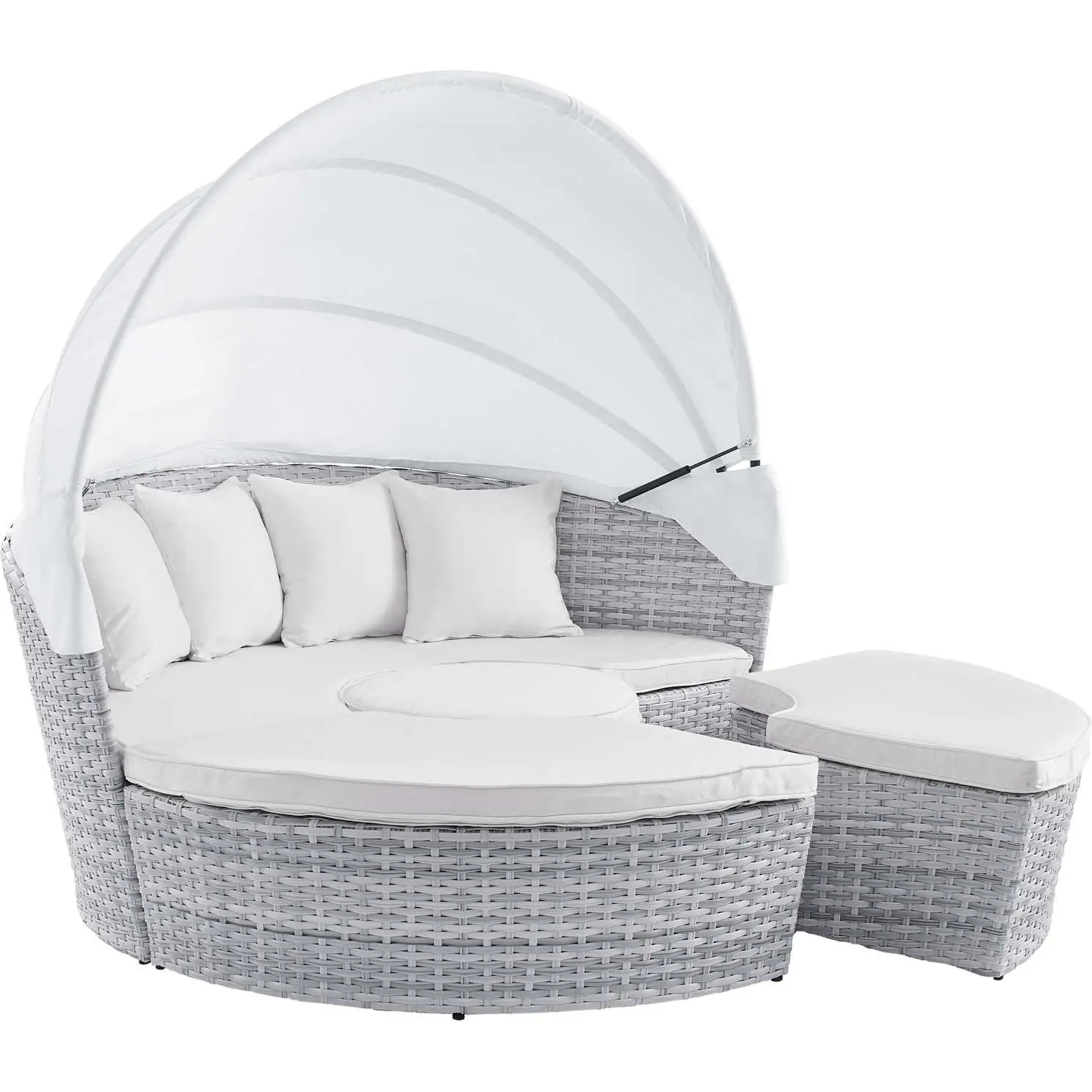 Modway Scottsdale Canopy Outdoor Daybed in Light Gray & White Fabric