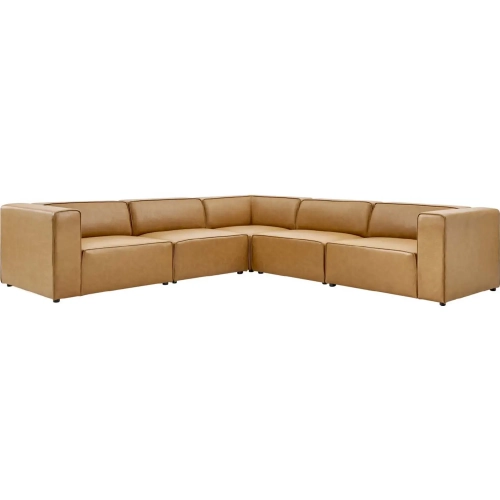 Modway Mingle 5 Piece Sectional Sofa in Tan Vegan Leather