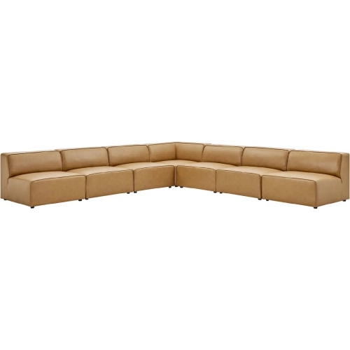 Modway Mingle 7 Piece Sectional Sofa in Tan Vegan Leather