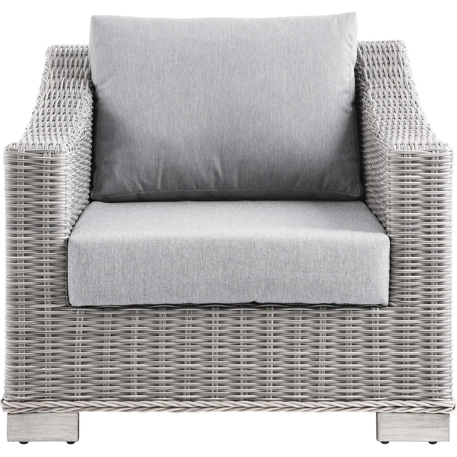 Modway Conway Outdoor Arm Chair in Gray Fabric & Gray Wicker Rattan