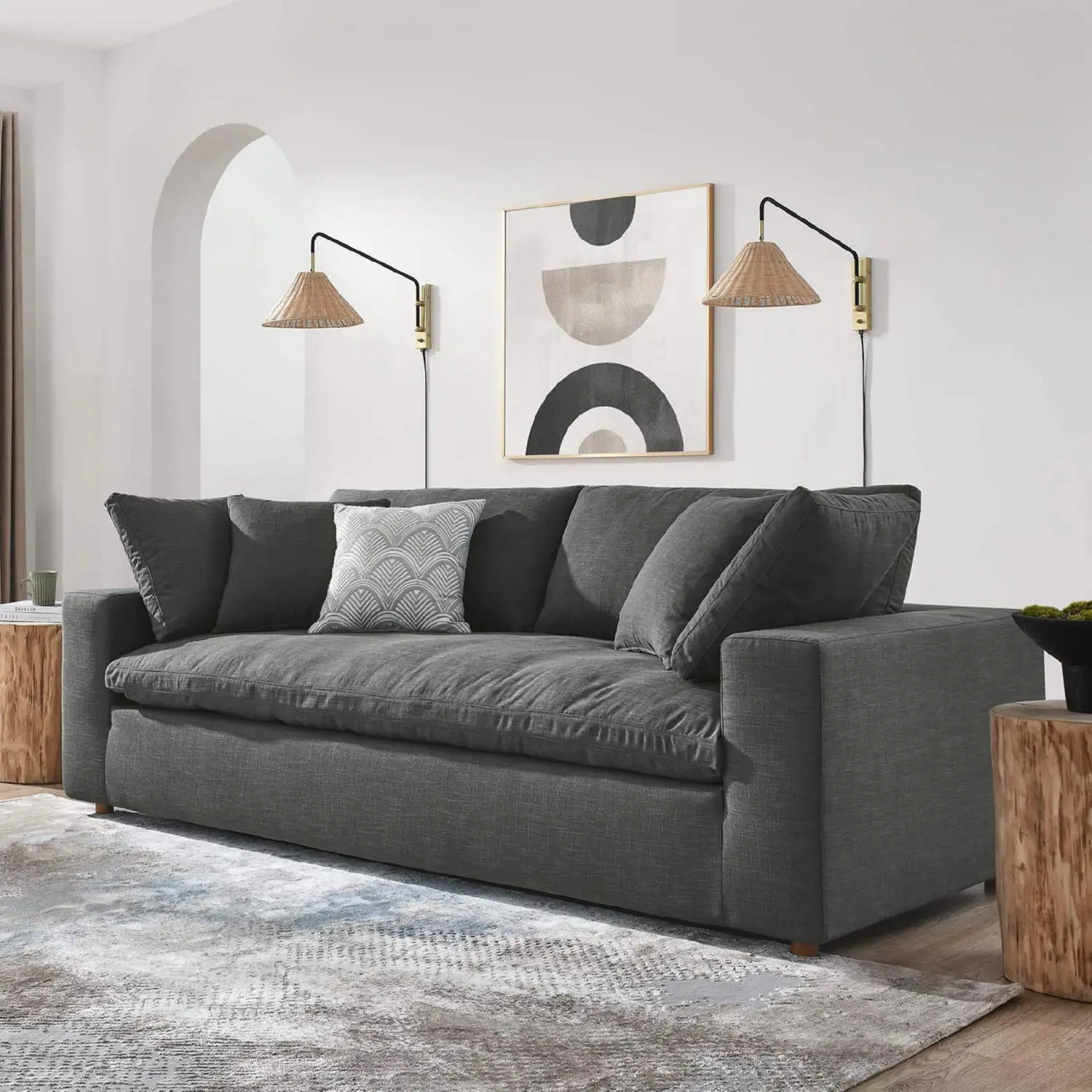 Modway Commix Down Filled Overstuffed Sofa in Gray Fabric