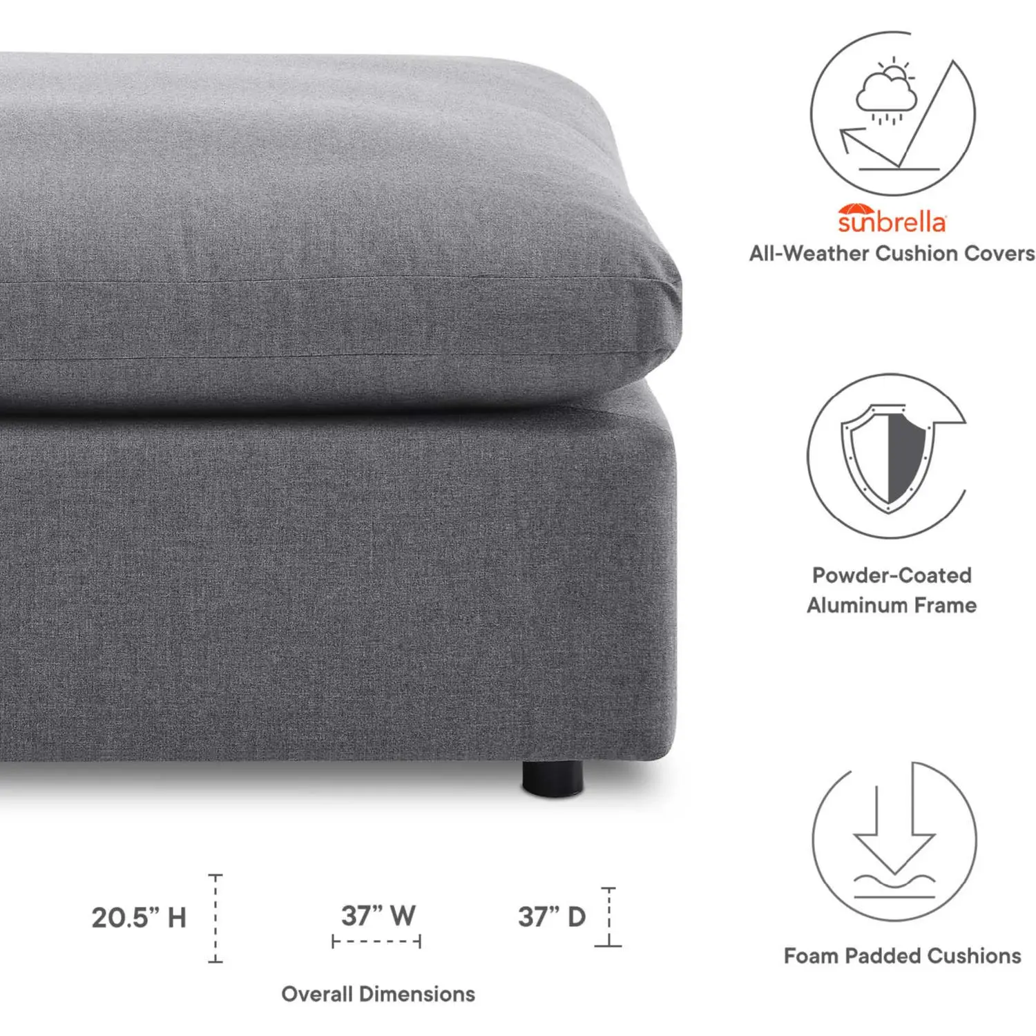 Modway EEI-4906-SLA Commix Outdoor Ottoman Gray Sunbrella®