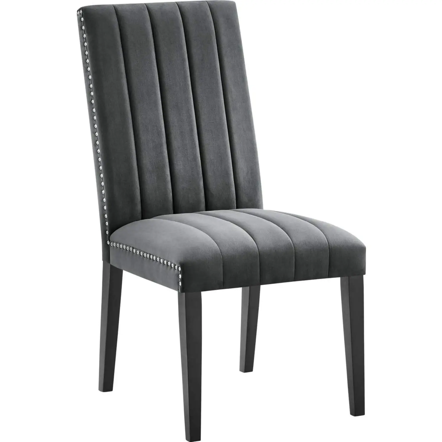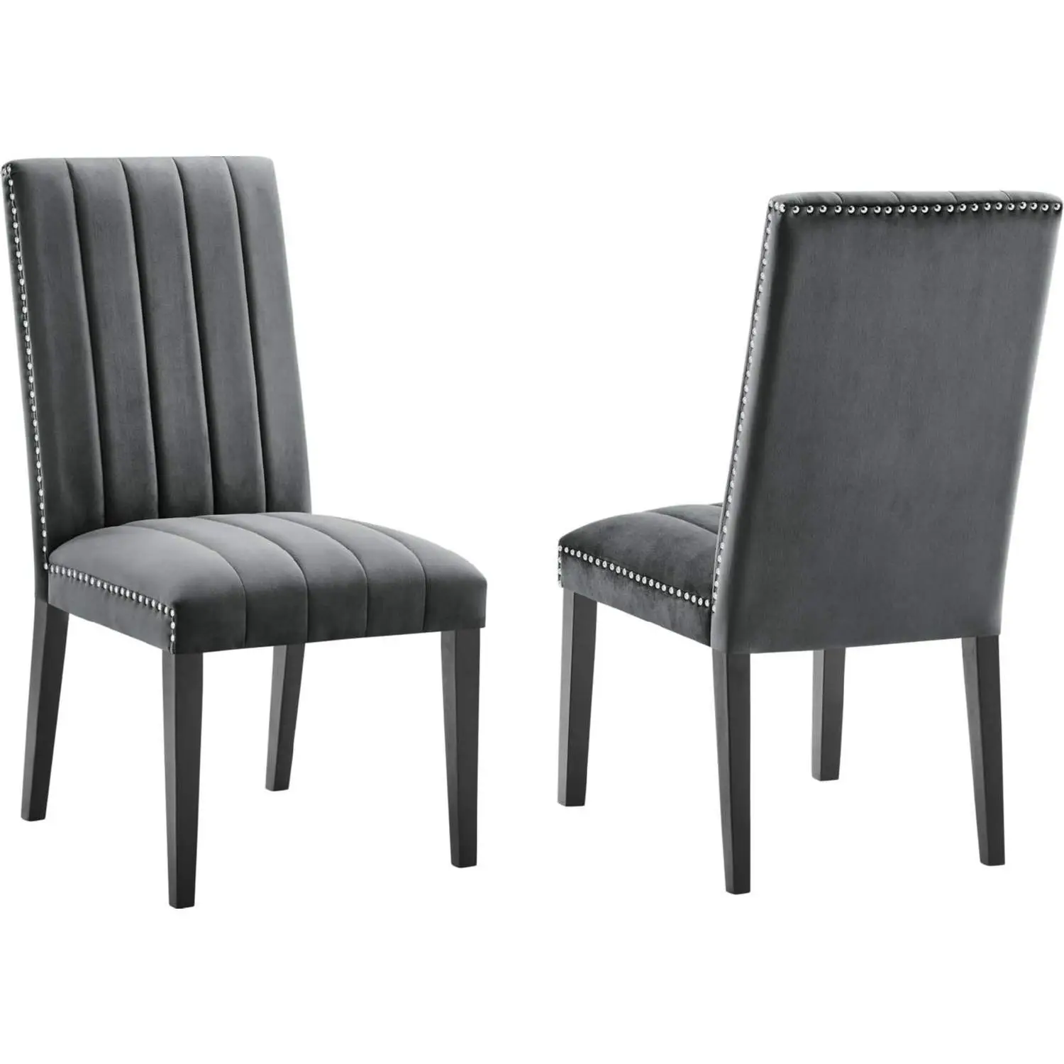 Modway Catalyst Dining Chair in Channel Tufted Gray Velvet (Set of 2)