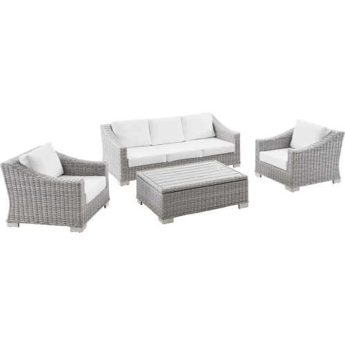Modway EEI-5095-WHI Conway Outdoor 4 Piece Sofa Set Light Gray Poly Rattan White Fabric