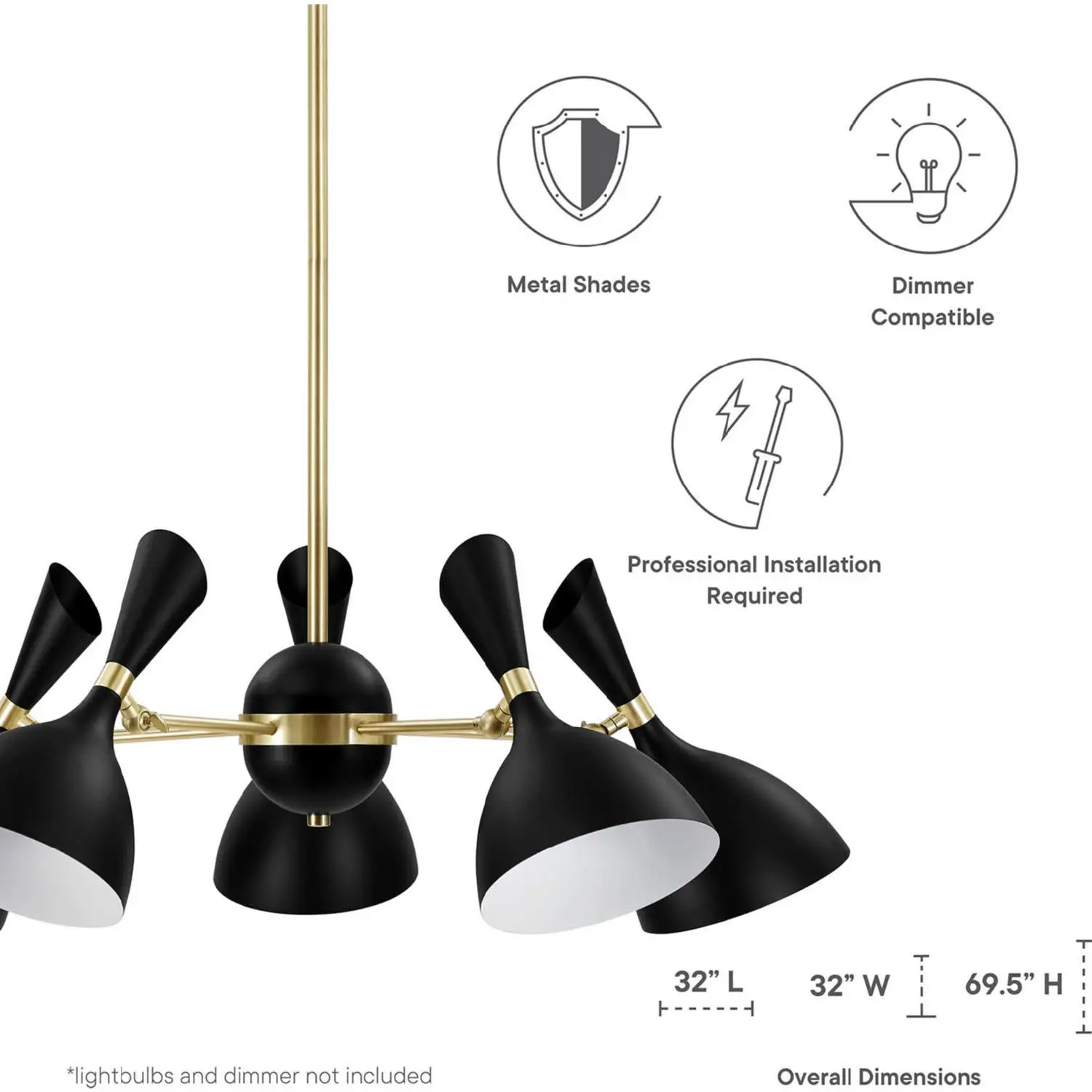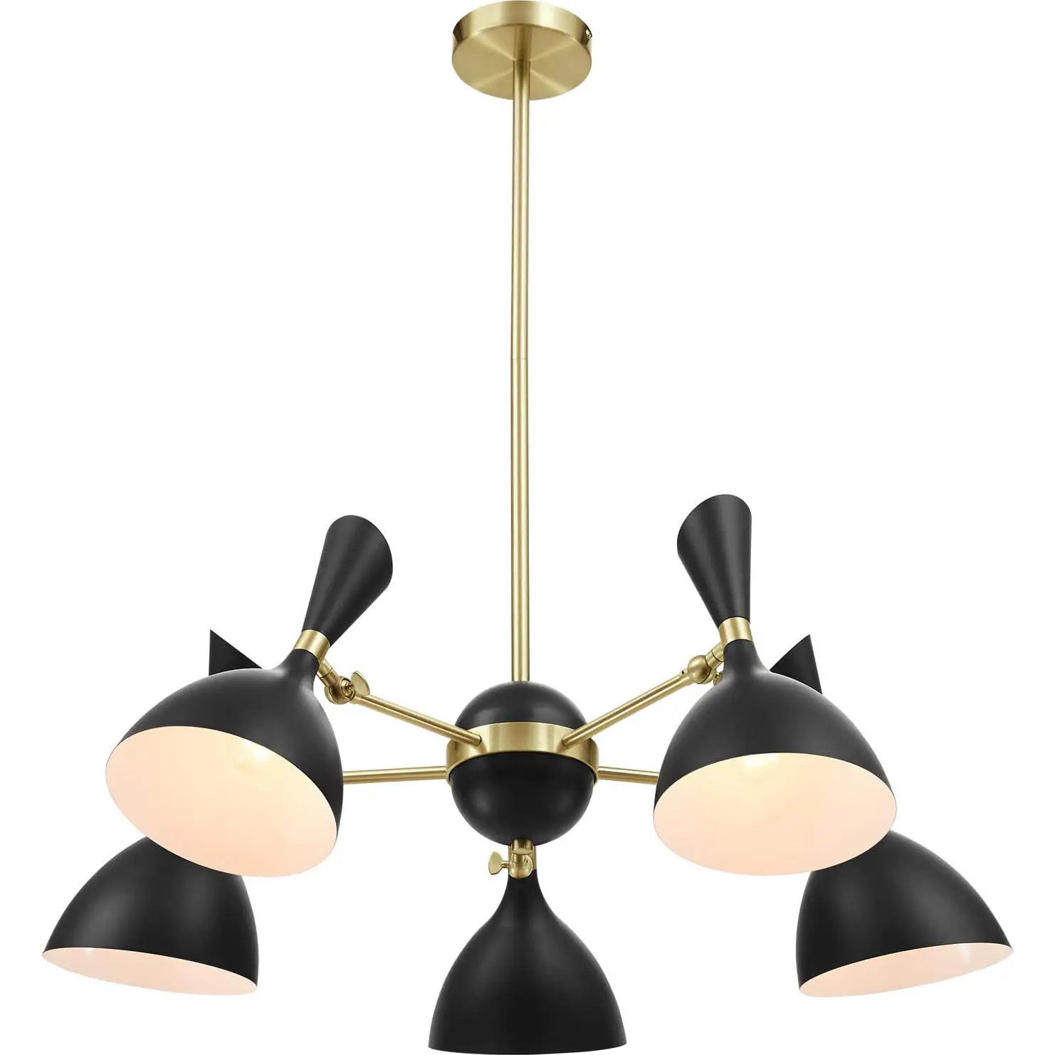 Modway EEI-5310-BLK Declare 5 Light 6" Arm Ceiling Pendant Light Black Metal Brass