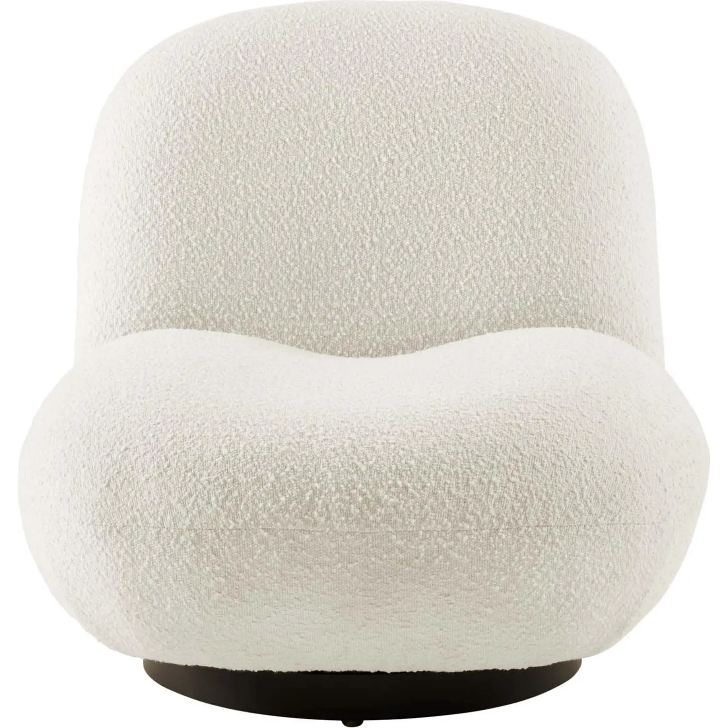 Modway Kindred Accent Swivel Chair in Ivory Boucle Fabric & Black Iron