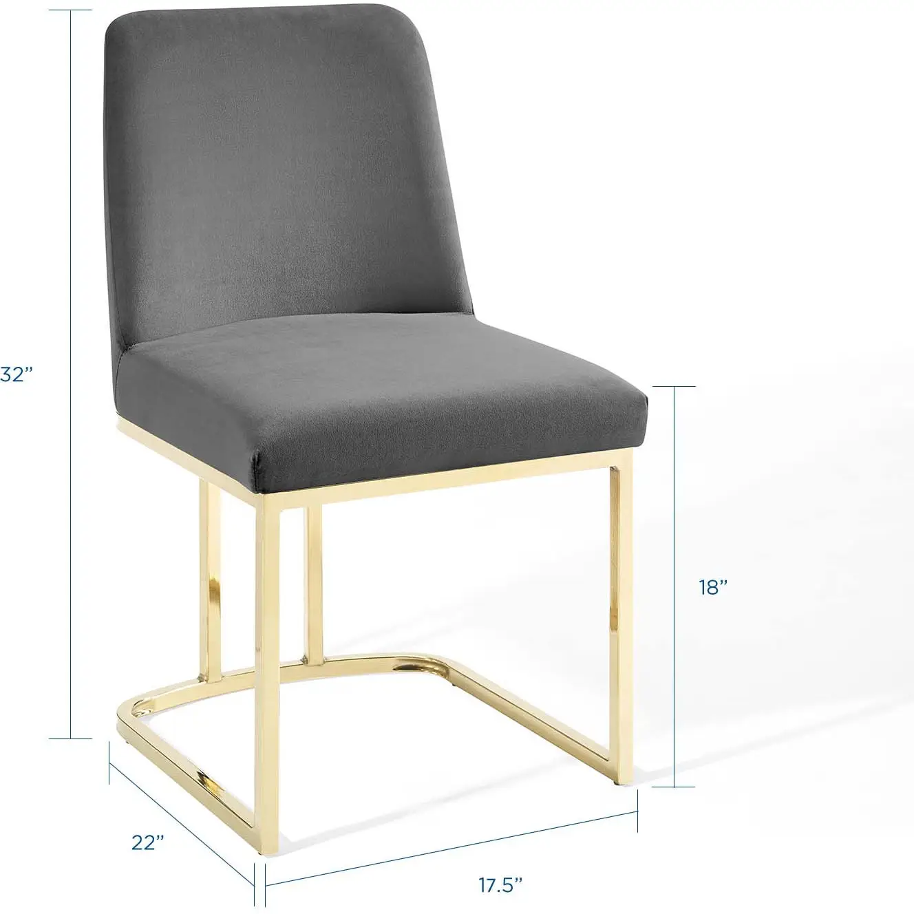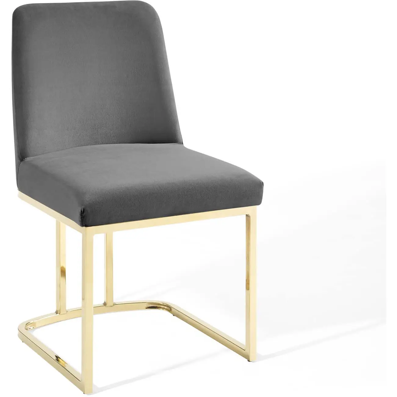 Modway EEI-5569-GLD-GRY Amplify Dining Chair Gray Velvet Gold Sled Base (Set of 2)