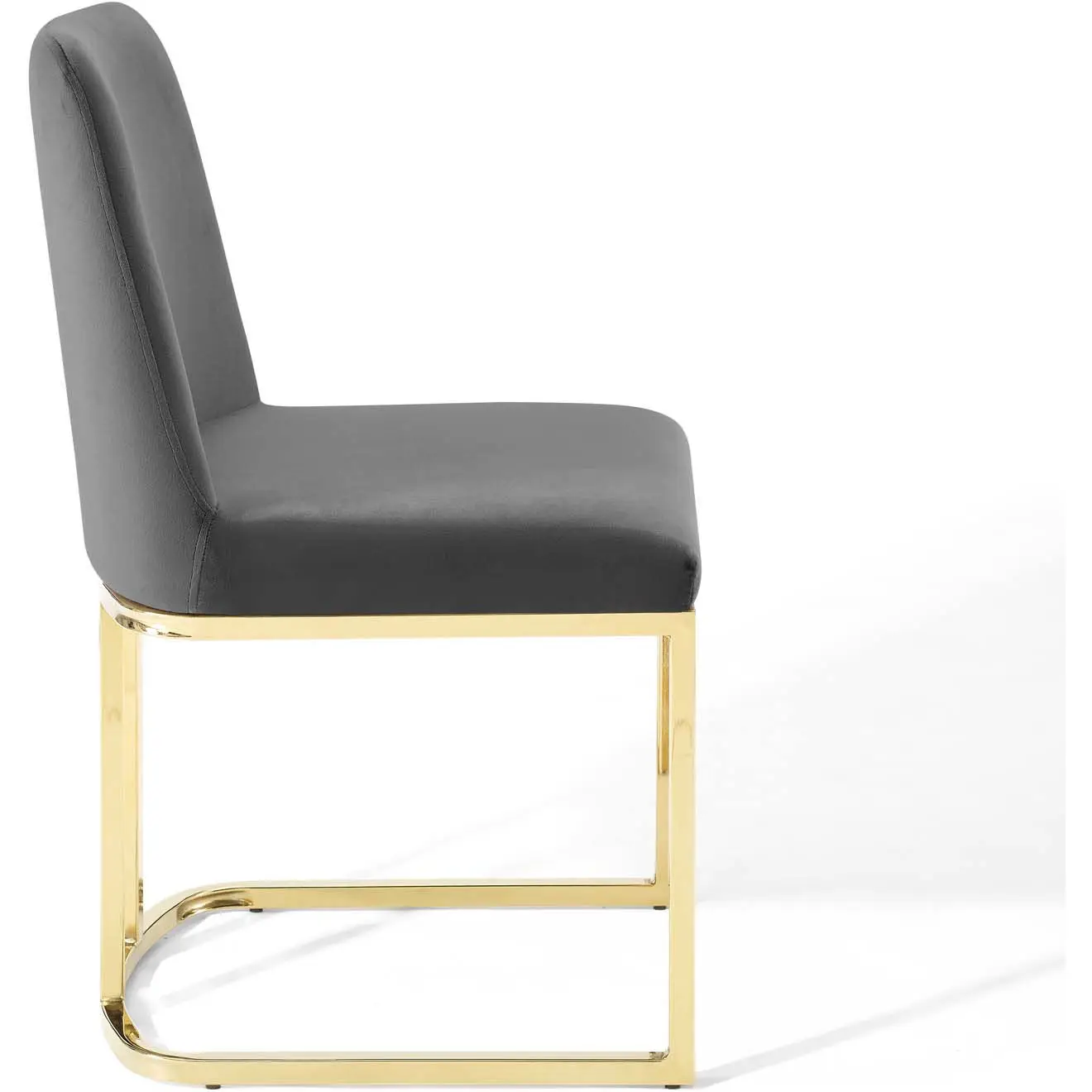 Modway Amplify Dining Chair in Gray Velvet & Gold Sled Base (Set of 2)