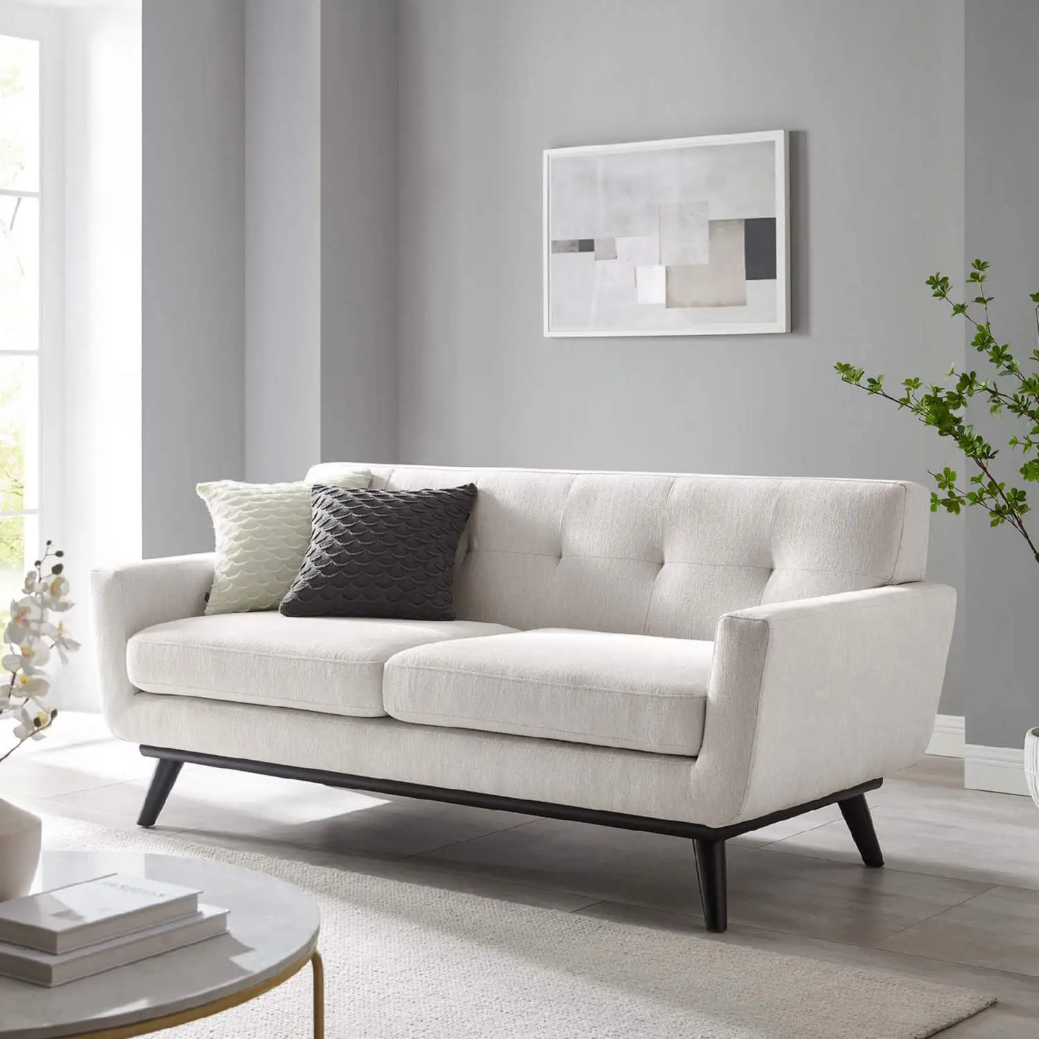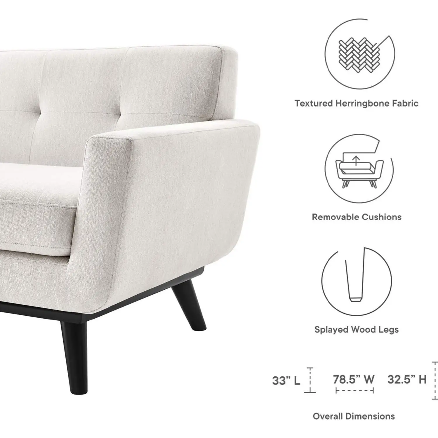 Modway EEI-5759-IVO Engage Loveseat Tufted Ivory Herringbone Fabric