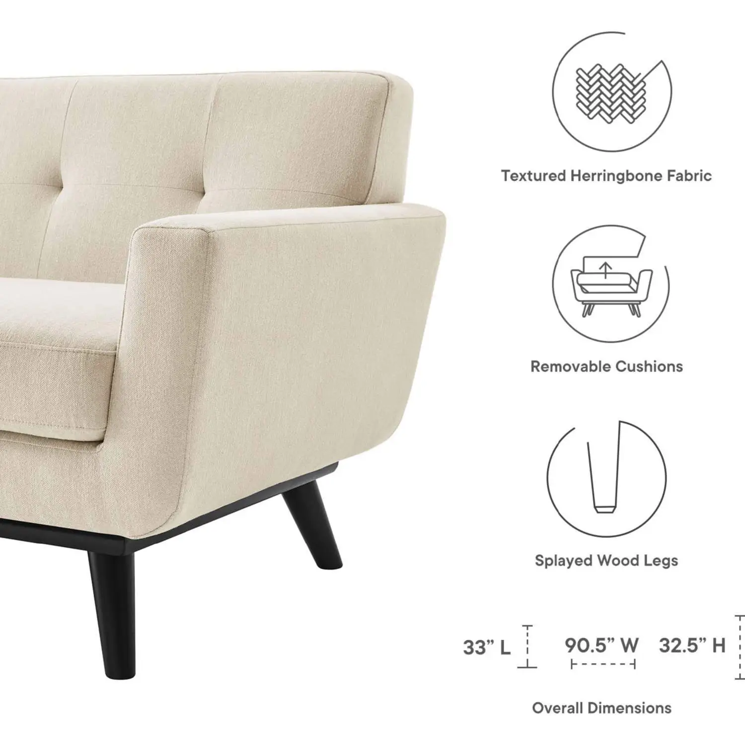 Modway EEI-5760-BEI Engage Sofa Tufted Beige Herringbone Fabric