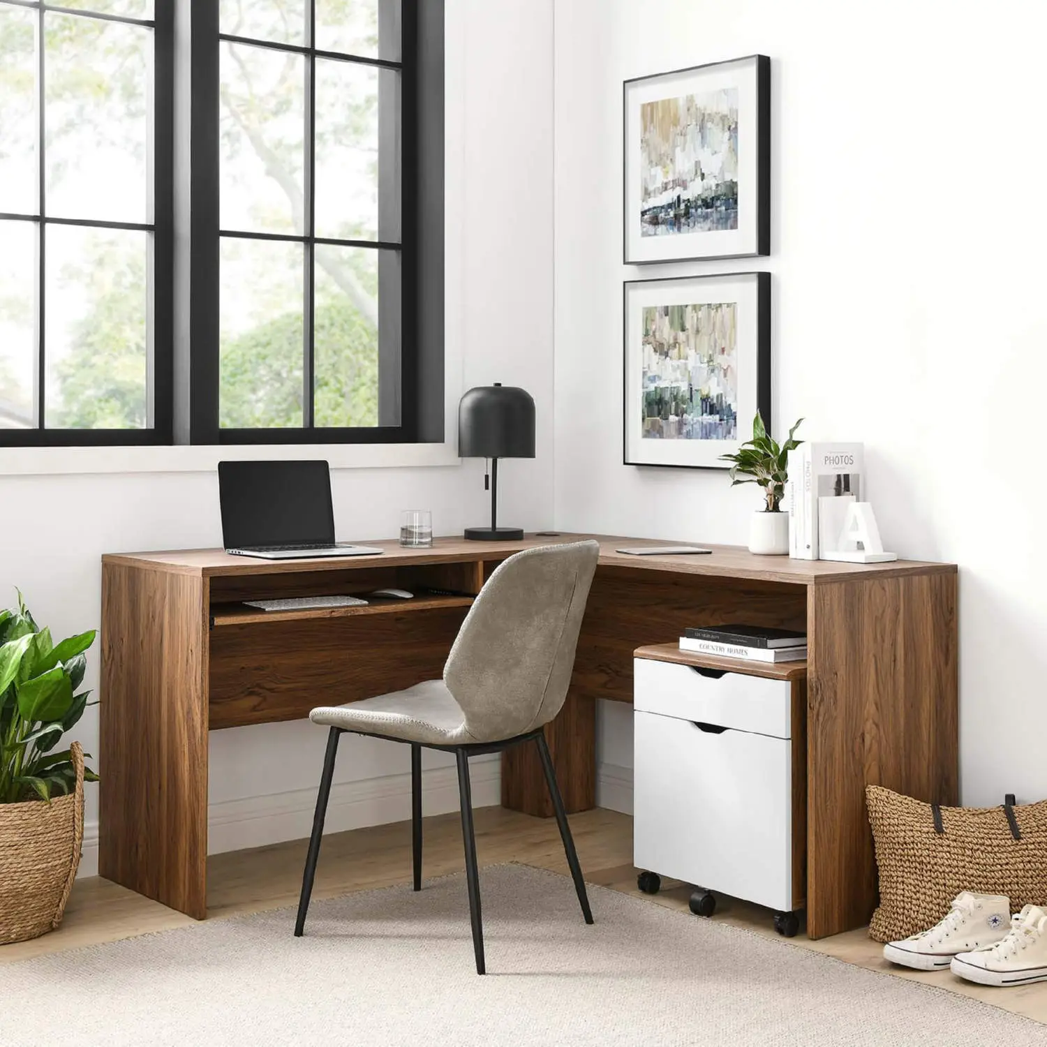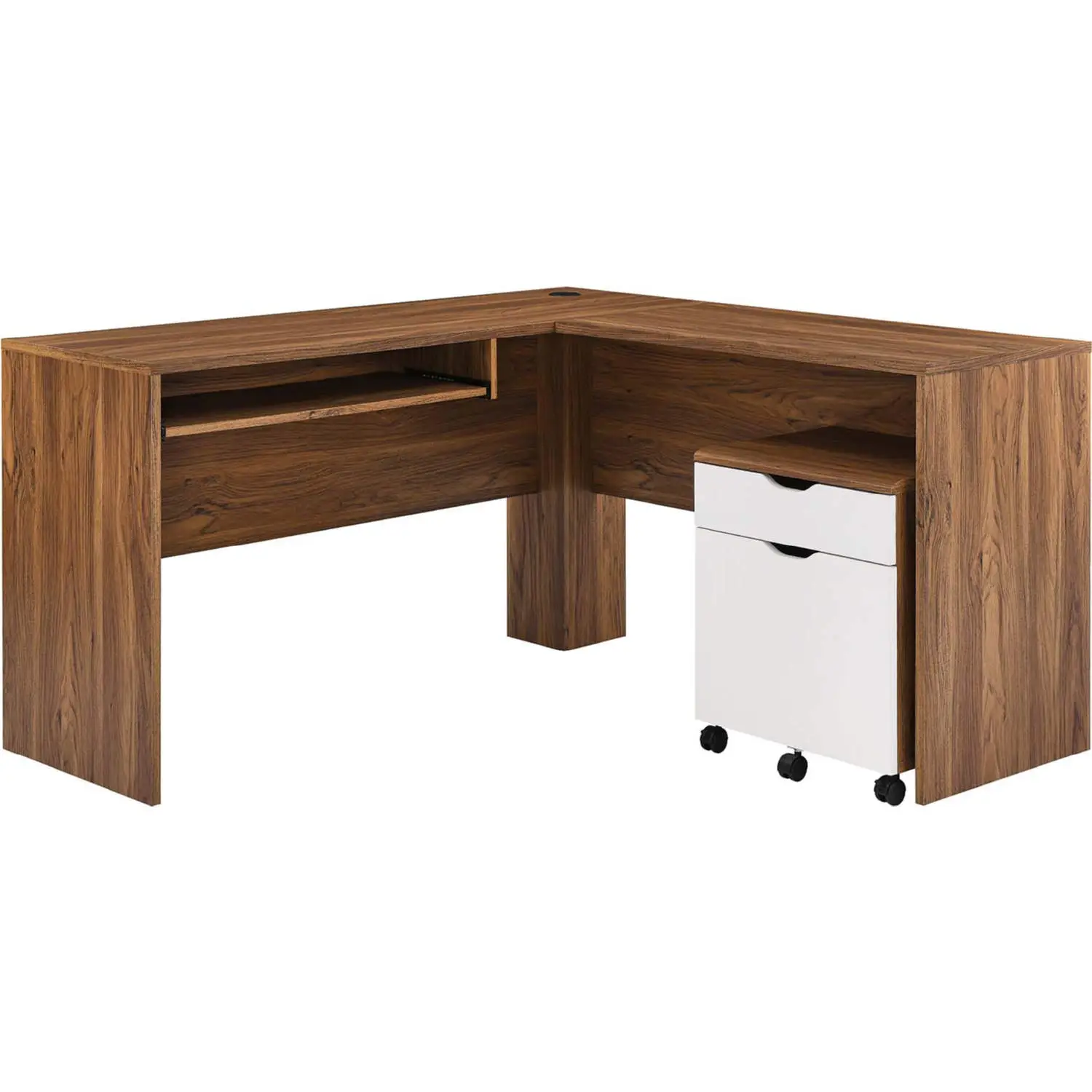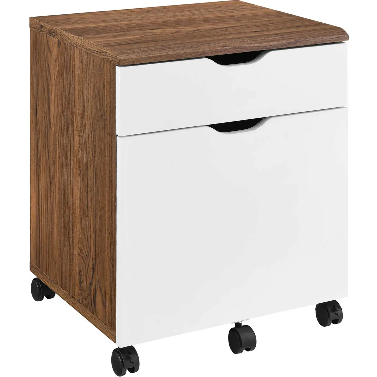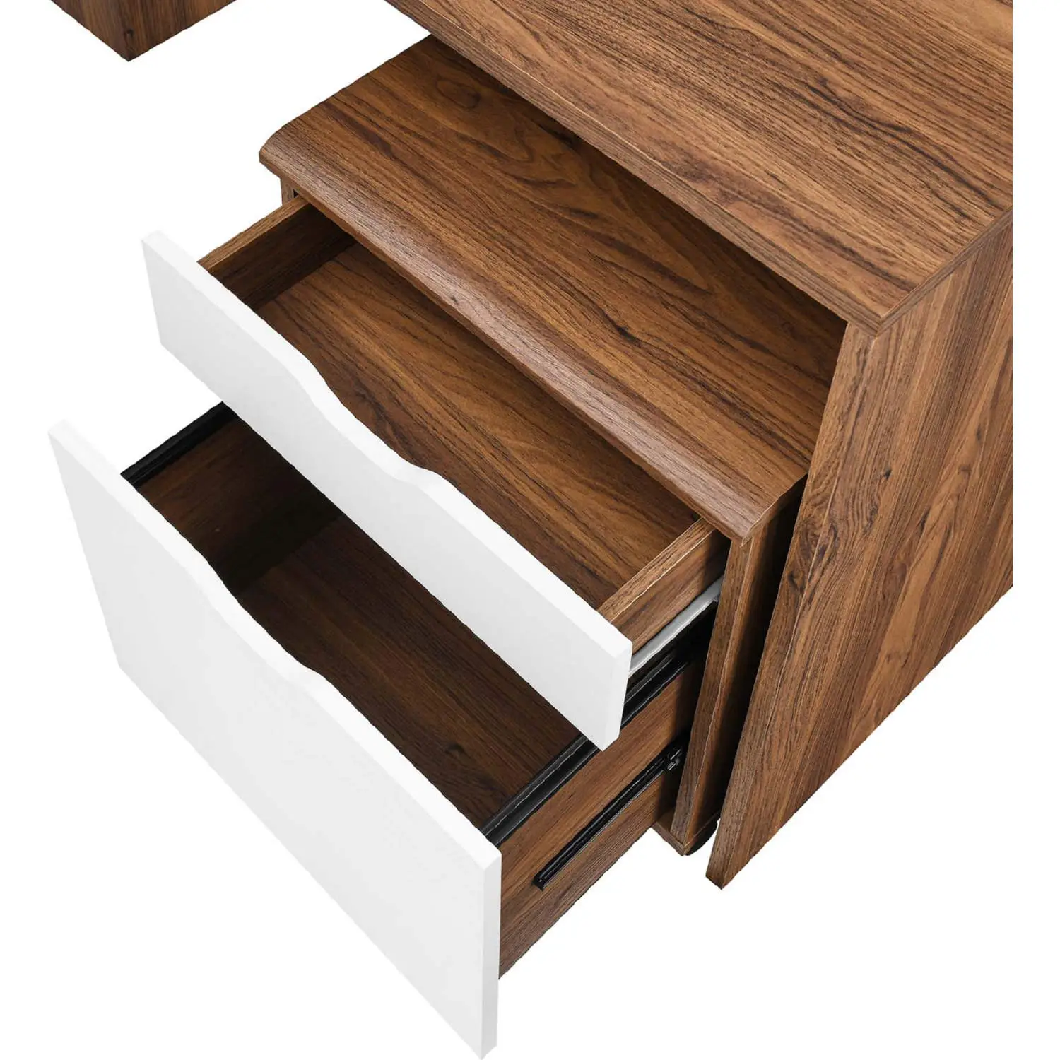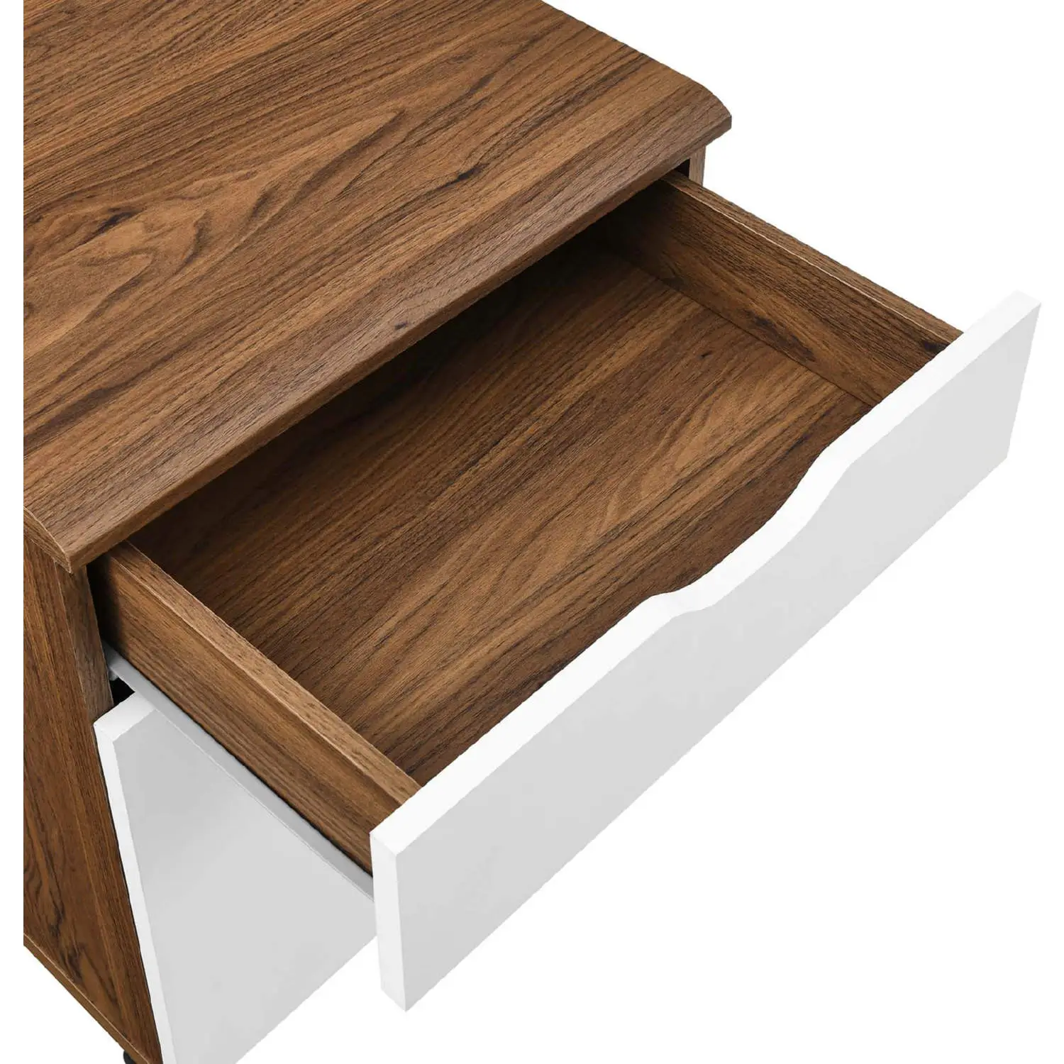 Modway EEI-5823-WAL-WHI Envision Desk & File Cabinet Set Walnut Finish & White