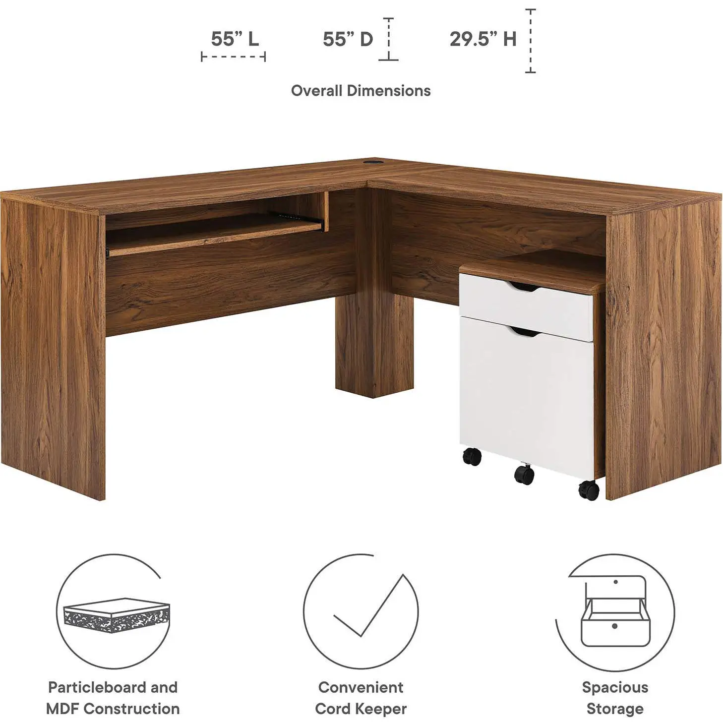 Modway Envision Desk & File Cabinet Set in Walnut Finish & White