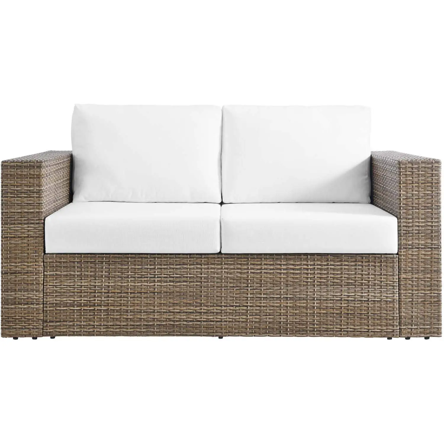 Modway Convene Outdoor Loveseat in Cappuccino PE Rattan & White Fabric