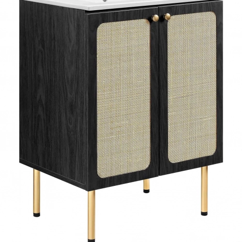 Modway EEI-6693-BLK-WHI Chaucer 24® Bathroom Vanity White Ceramic Black Wood Grain Rattan