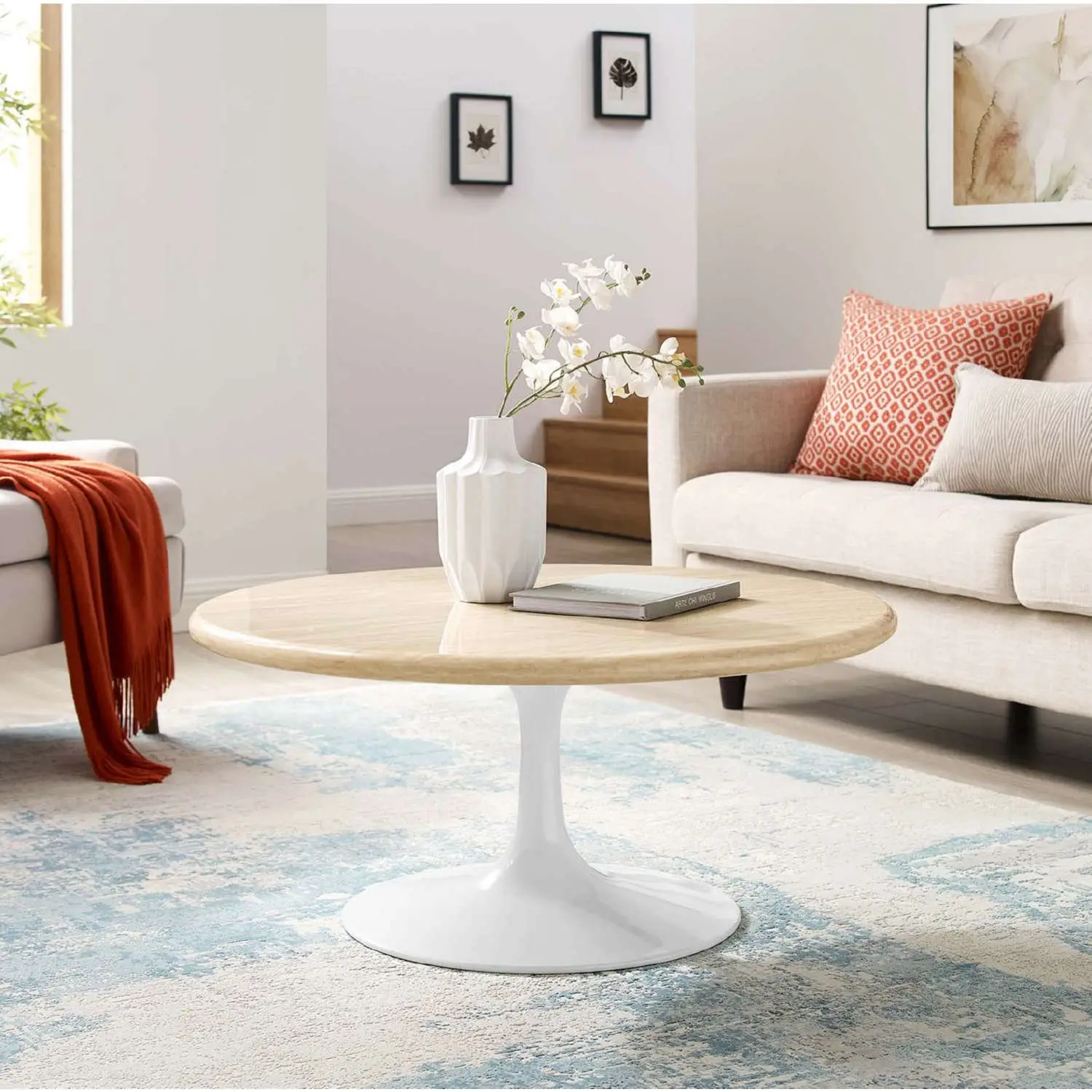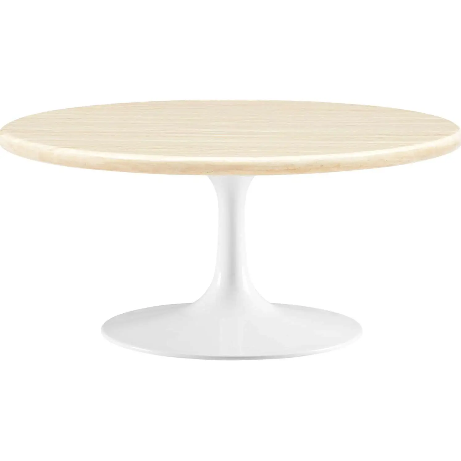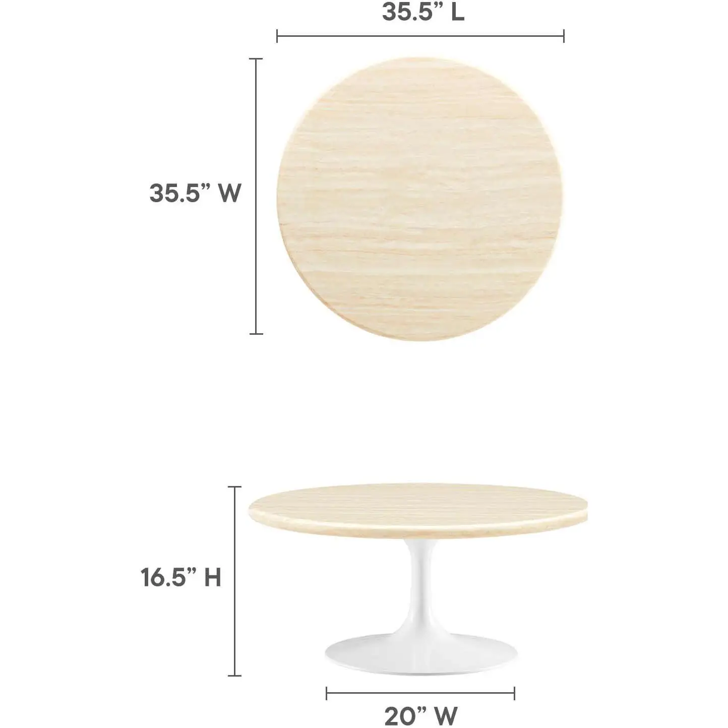 Modway EEI-6749-WHI-TRA Lippa 36" Round Coffee Table White Metal Faux Travertine