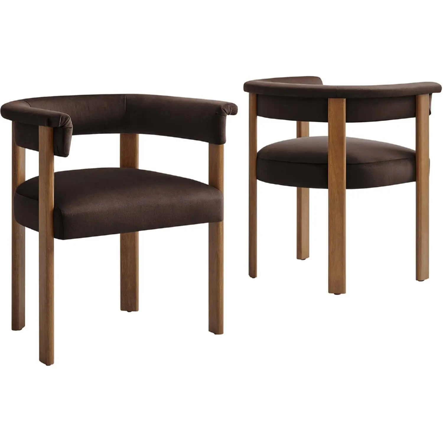 Modway EEI-6775-CHB-DBR Imogen Barrel Dining Chair Brown Performance Velvet Wood (Set of 2)