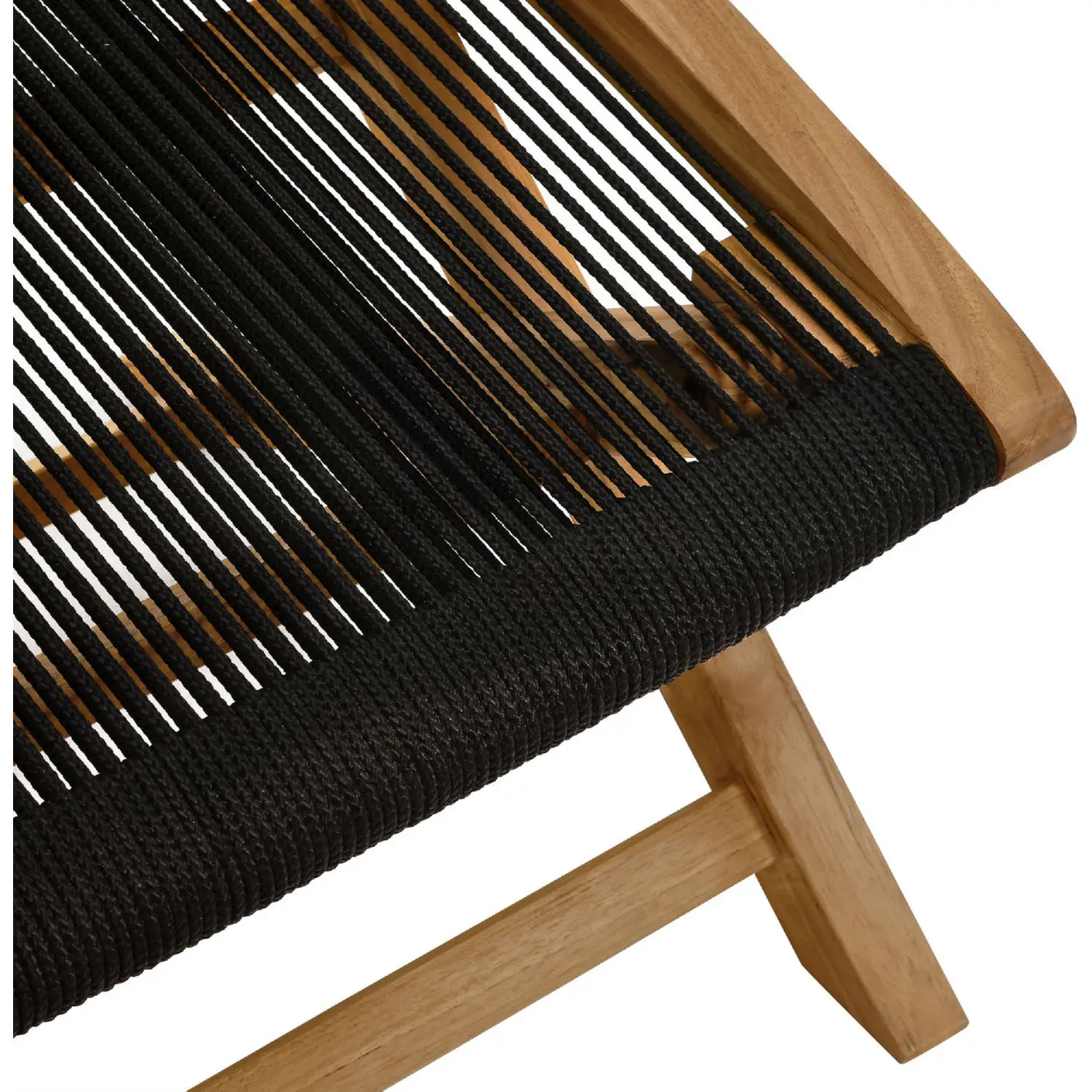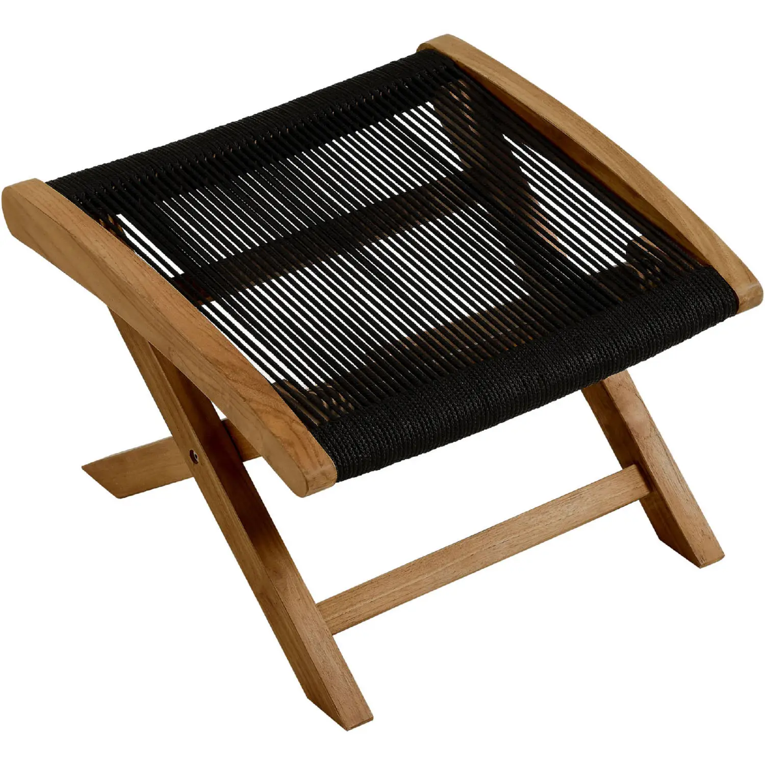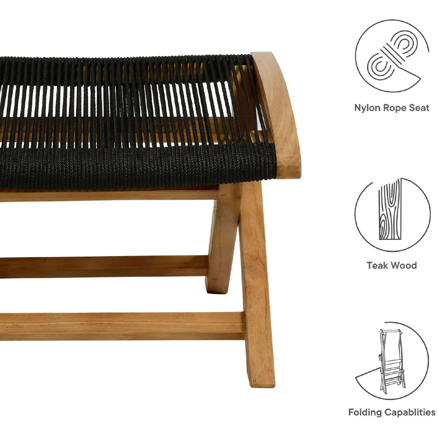 Modway Vienna Outdoor Folding Ottoman in Black Rope & Teak Wood