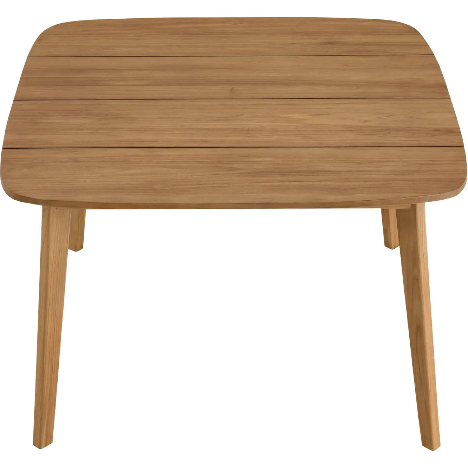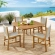 • Set includes: solid teak wood dining table and 4 armless dining chairs
