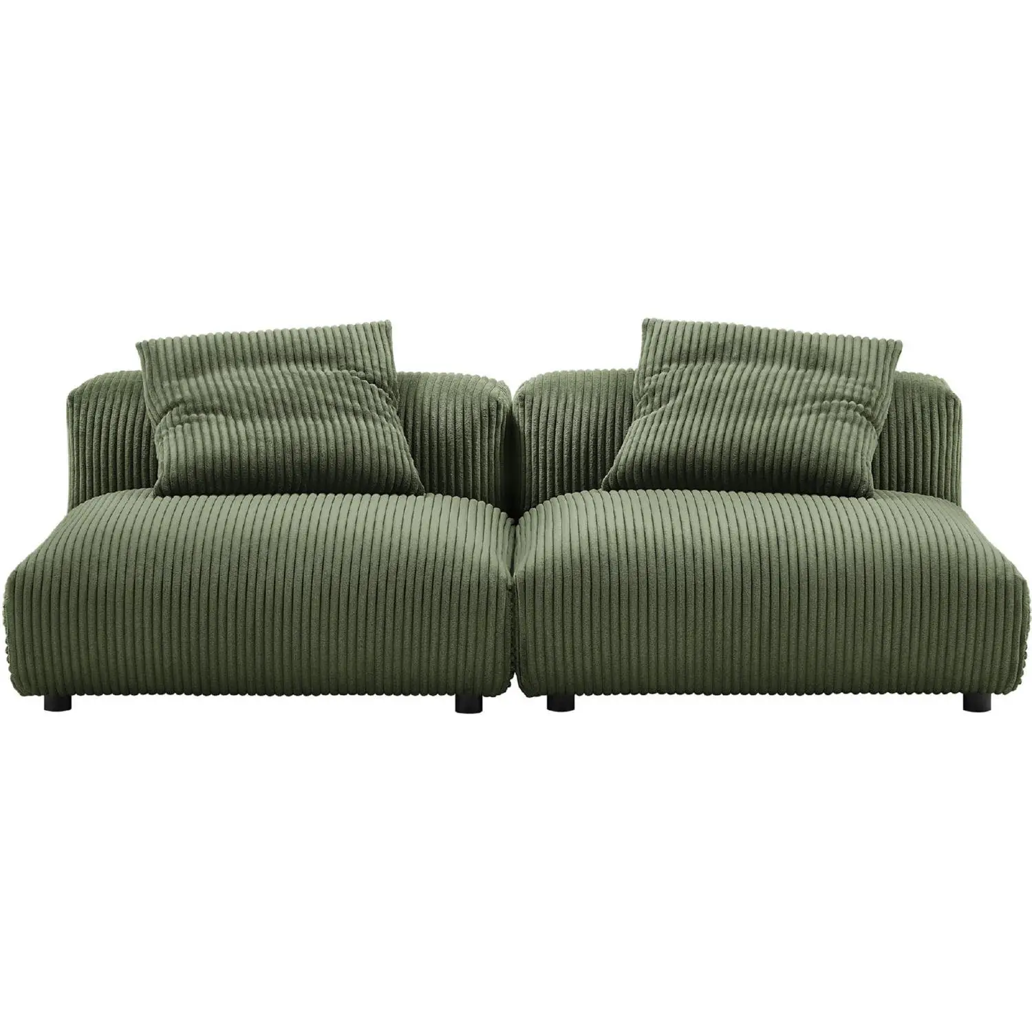 Revel in ultimate comfort and modern style with the Solace Modular Corduroy 2 seater Sofa. This oversized corduroy sofa is perfect for any living room, offering endless flexibility. Its modular furniture design allows you to change the arrangement to suit the needs of the moment or expand your seating by adding more pieces in the future. Featuring a sturdy frame, dense foam padding, and a sinuous spring support system, the Solace 2 Piece Sofa grants a premium seating experience. The comfy corduroy upholstery adds a cozy, casual vibe, making this armless sectional sofa a perfect addition to any living space or lounge area. Equipped with non-marking plastic glides and complementing accent pillows, this armless modular couch is both stylish and practical. With no assembly required, you can enjoy immediate relaxation with this 2 piece sofa set.
