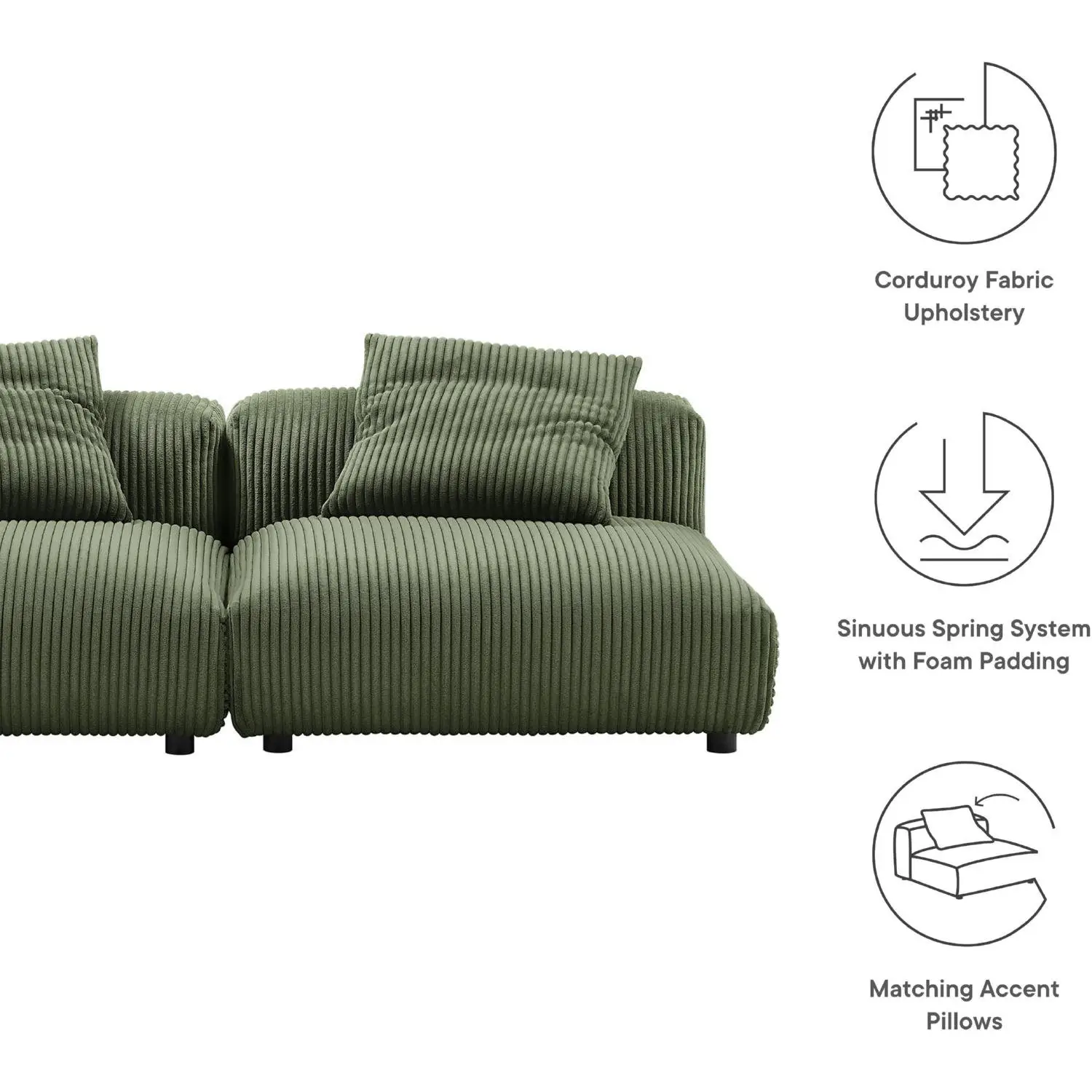 Modway EEI-7036-FRN Solace 2 Piece Modular Sofa Fern Green Corduroy Fabric